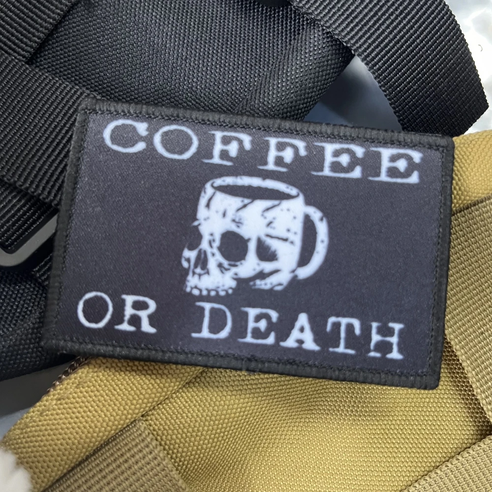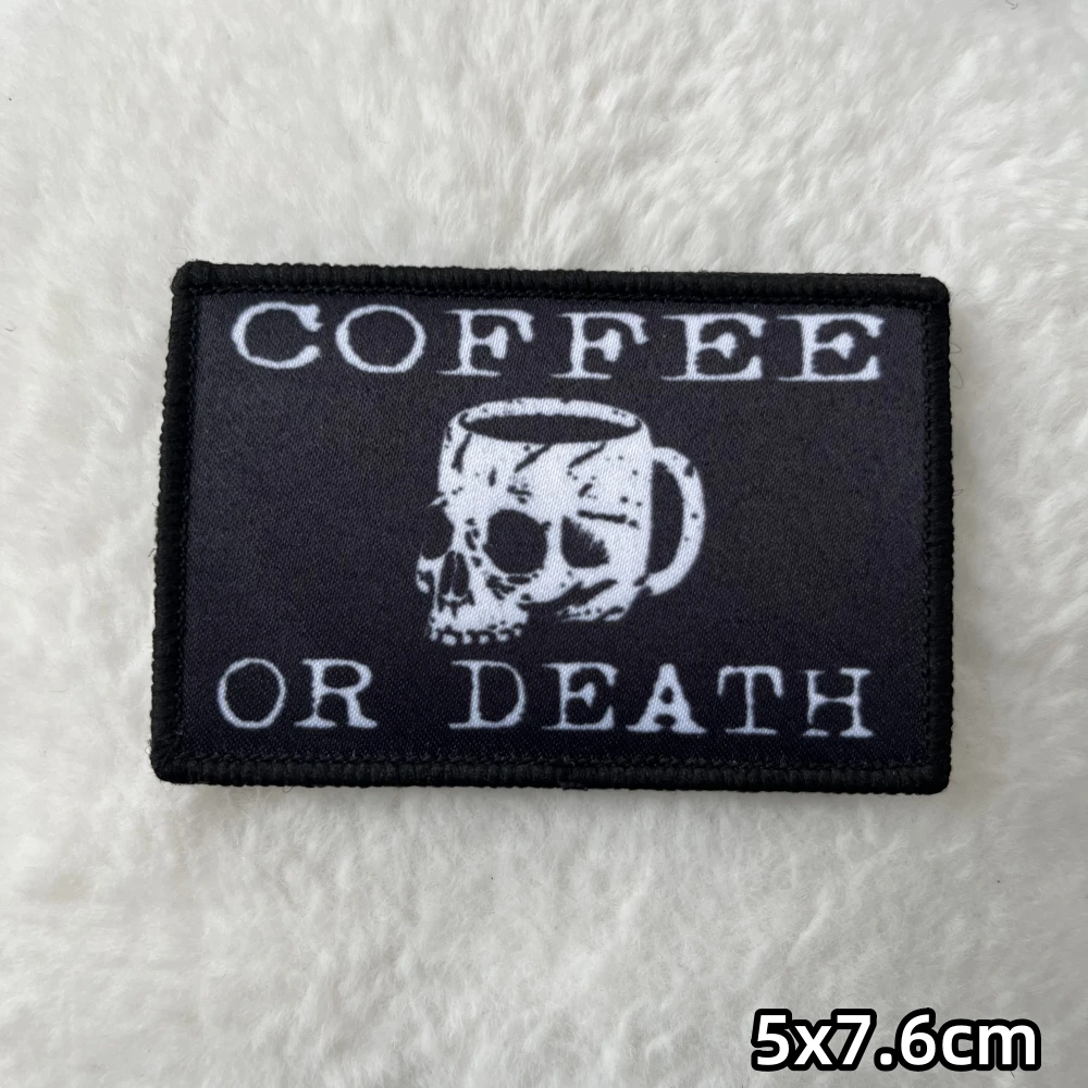 Parche de café o muerte, parches tácticos del ejército de moral divertida, insignia militar, mochila, pegatina de impresión con gancho y bucle