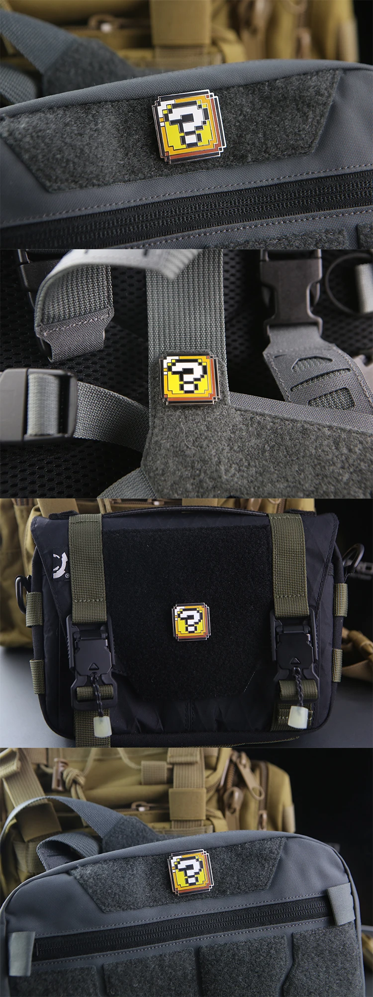 Parche de caja mágica de píxeles de Metal, pegatinas para mochila DIY, insignia táctica, apliques, bolsa de ropa, signo de interrogación decorativo