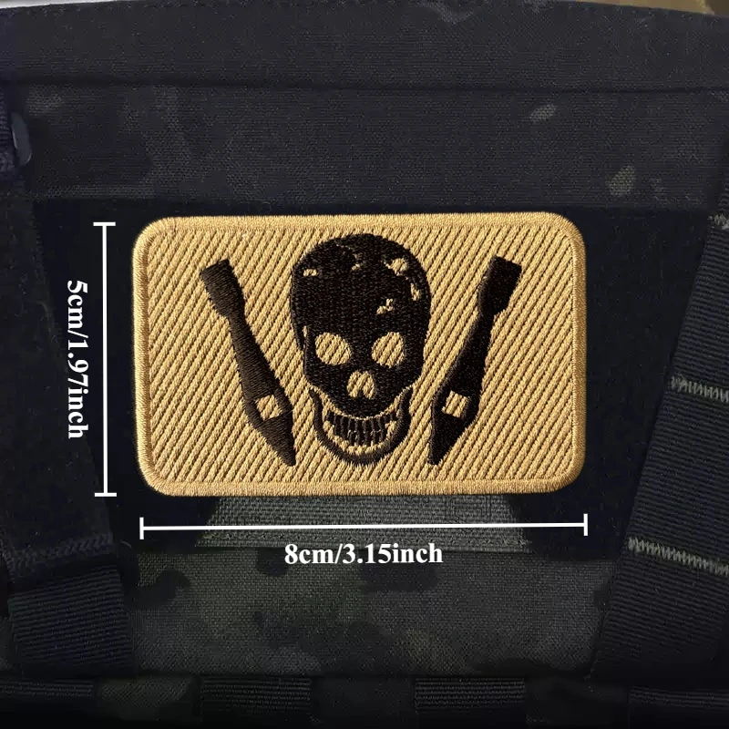 Parche de calavera bordado en ropa dos misiles insignia de moral táctico gancho bucle parches militares mochila pegatinas brazalete