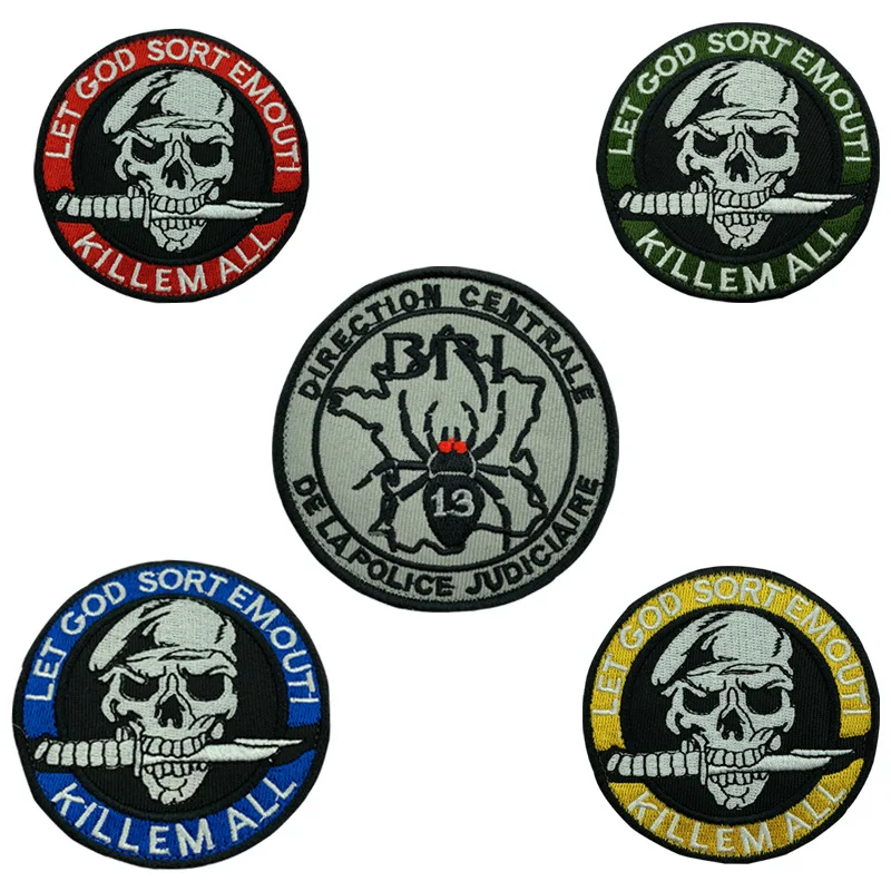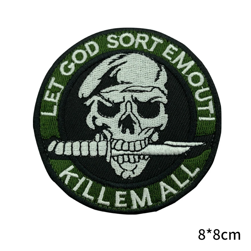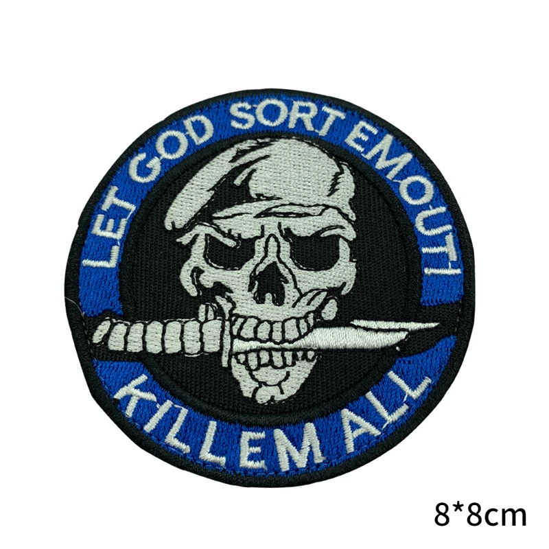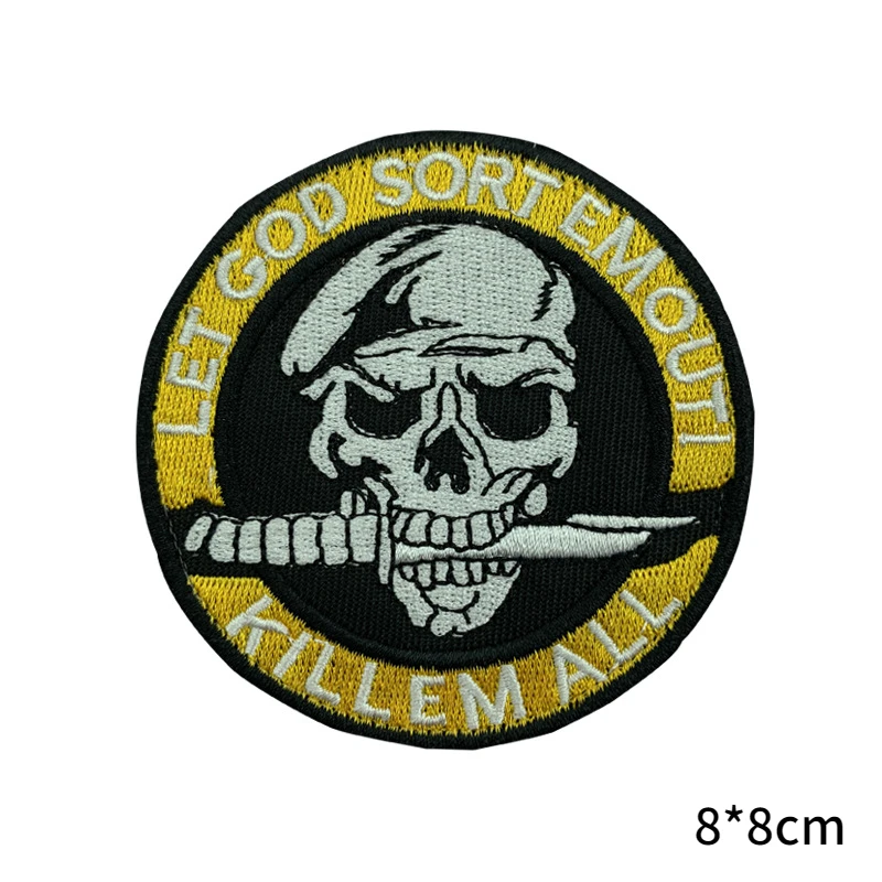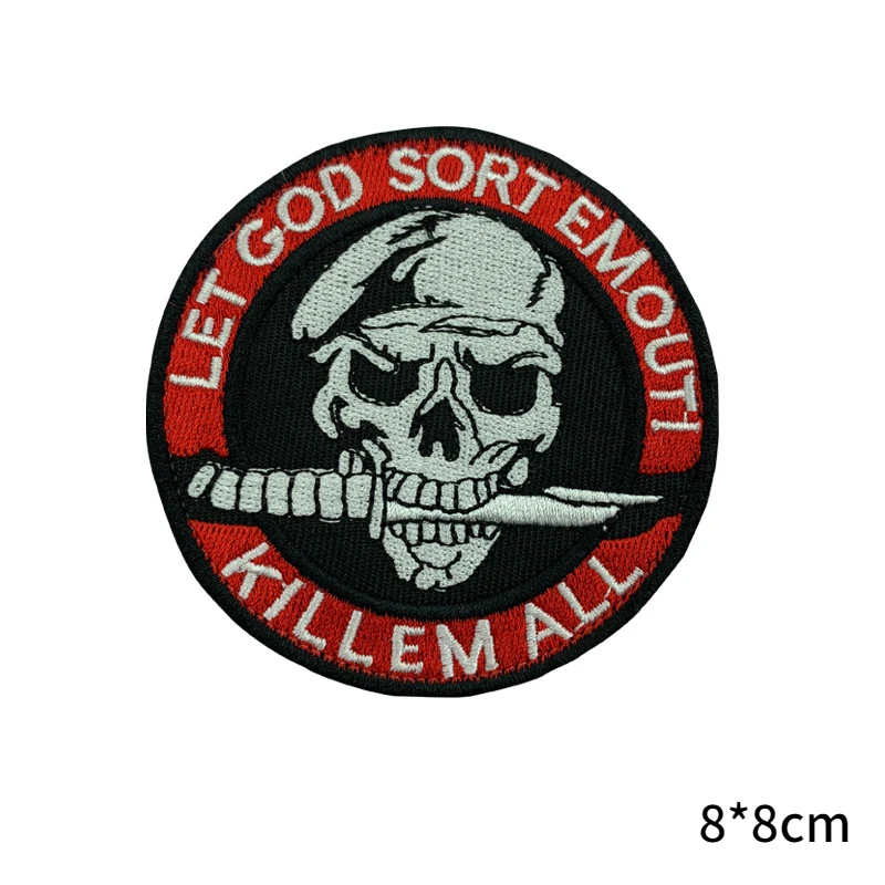 Cuchillo, parche de Calavera, insignias bordadas de las fuerzas especiales, pegatina Punk para chaqueta, apliques de gancho y bucle tácticos militares para ropa