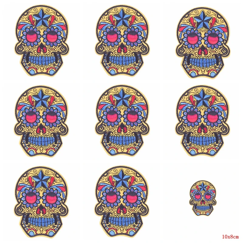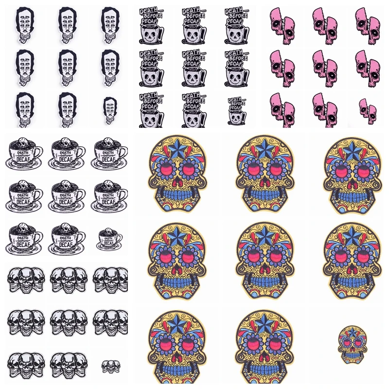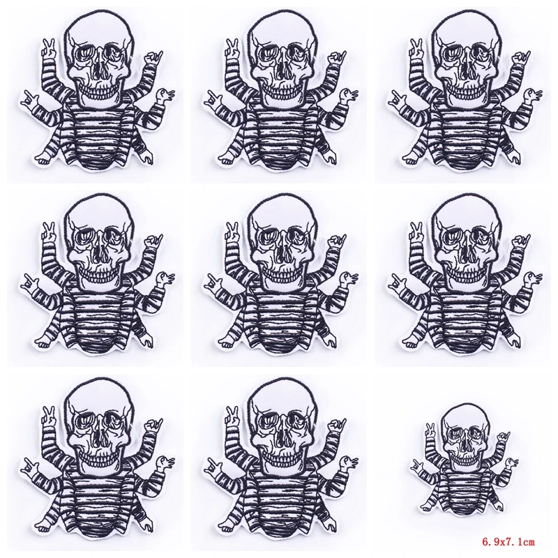 10 unids/lote calavera hierro en parche Skeletor parches para ropa pegatinas parches bordados en ropa Punk ropa rayas Decoración