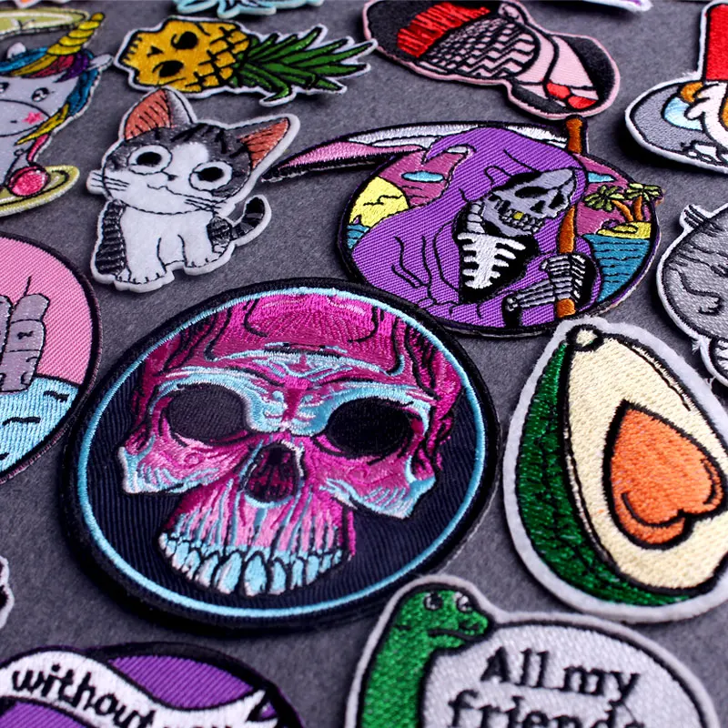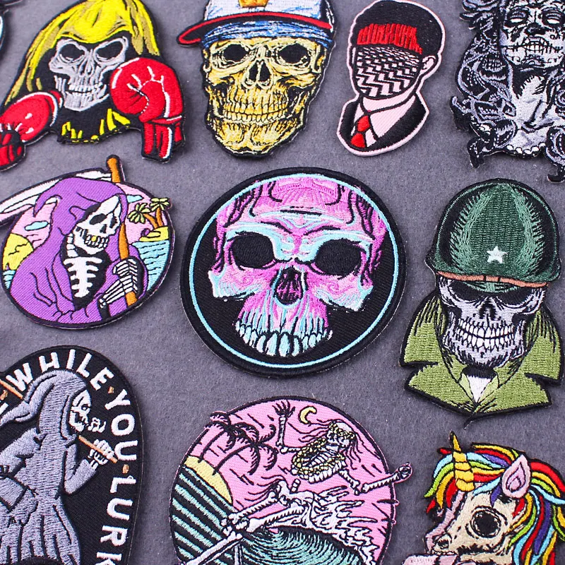 Parche Punk Ecusson Thermocollants parches bordados para ropa gato/esqueleto parche hierro en parches en ropa chaqueta raya
