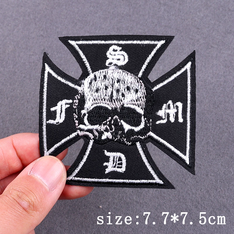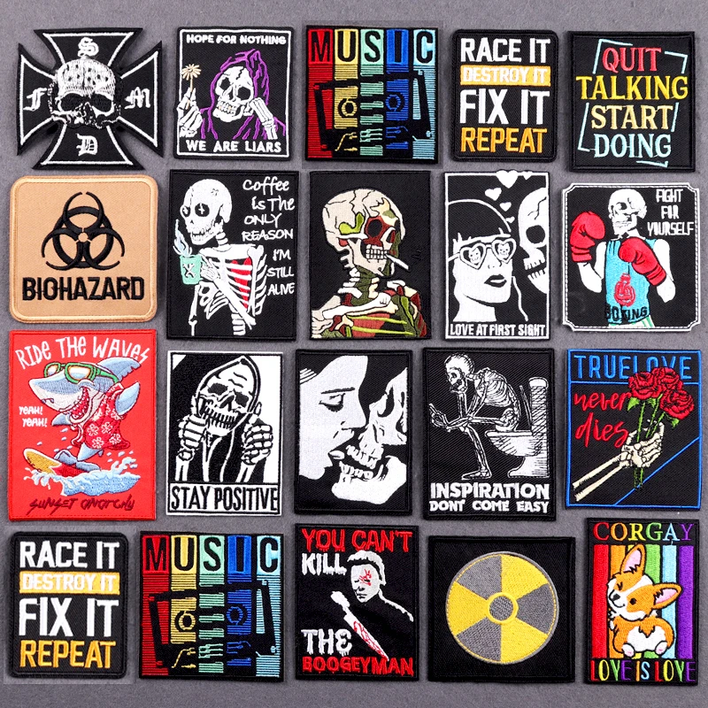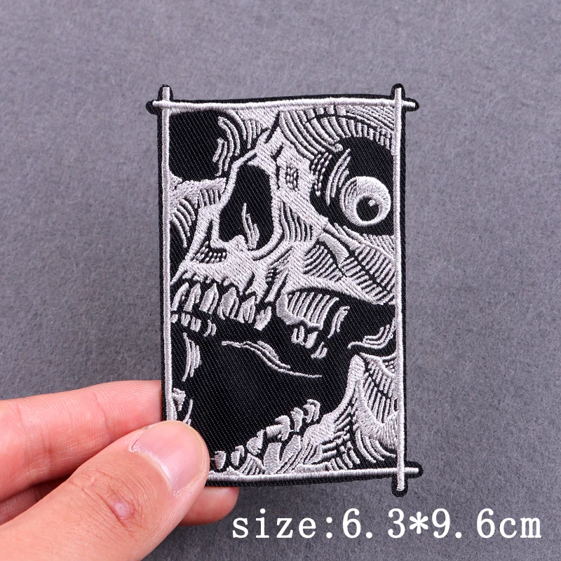 Parche de calavera Punk, parches de hierro para ropa, parches bordados de tarjetas cuadradas en ropa, parche Rock de Hip Hop para pegatinas de ropa