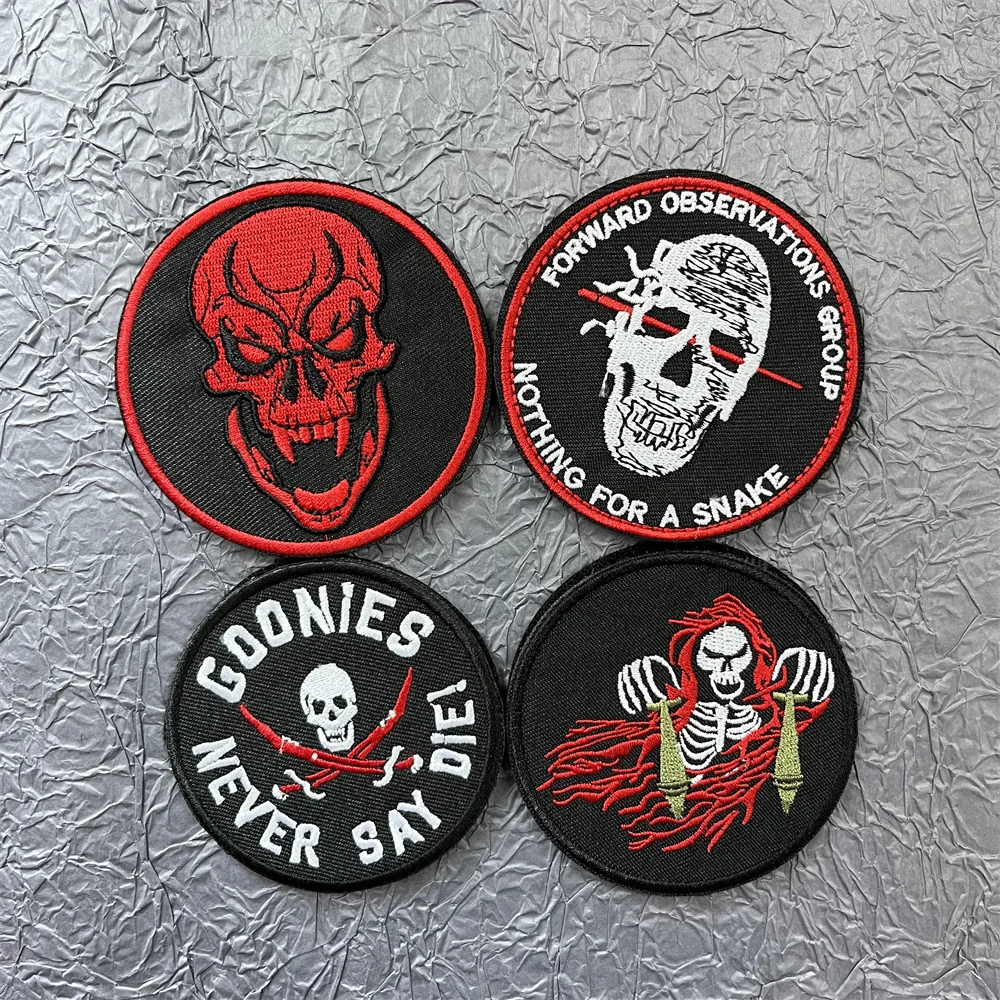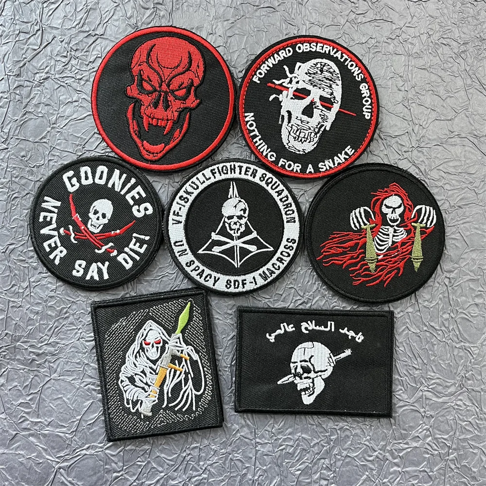 Parche de calavera táctica bordado en la ropa, parches de gancho y bucle, mochila, Accesorio militar, aplique para ropa, insignia al aire libre