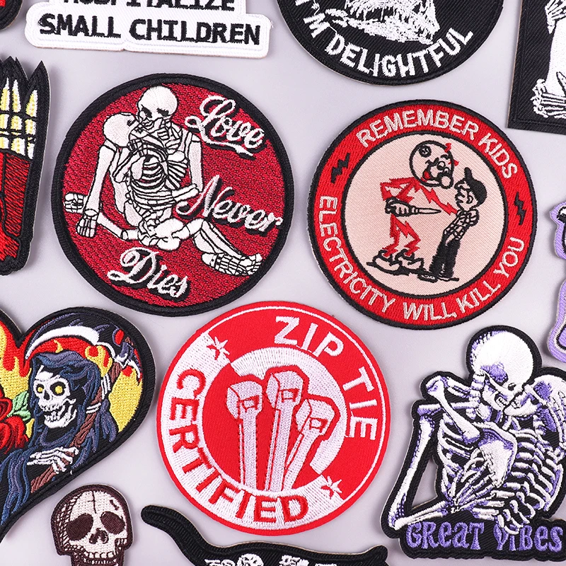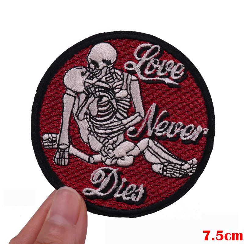 Parche de calavera de terror/Punk, parches bordados, parches para planchar, bordado, corazón de amor, rosa, parches de calavera para ropa, costura DIY