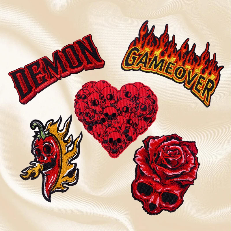Parche de calavera de Horror/Rosa de 5 piezas Punk/parches bordados con letras de llama, chaquetas, mochila, parche para coser, parches de hierro para ropa DIY