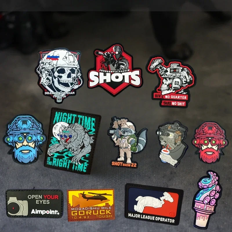 Parche de calavera de visión nocturna de PVC 3D, Parche de gancho y bucle, insignia de casco, disparos, mira de punto rojo, parches militares, mochila táctica, brazalete