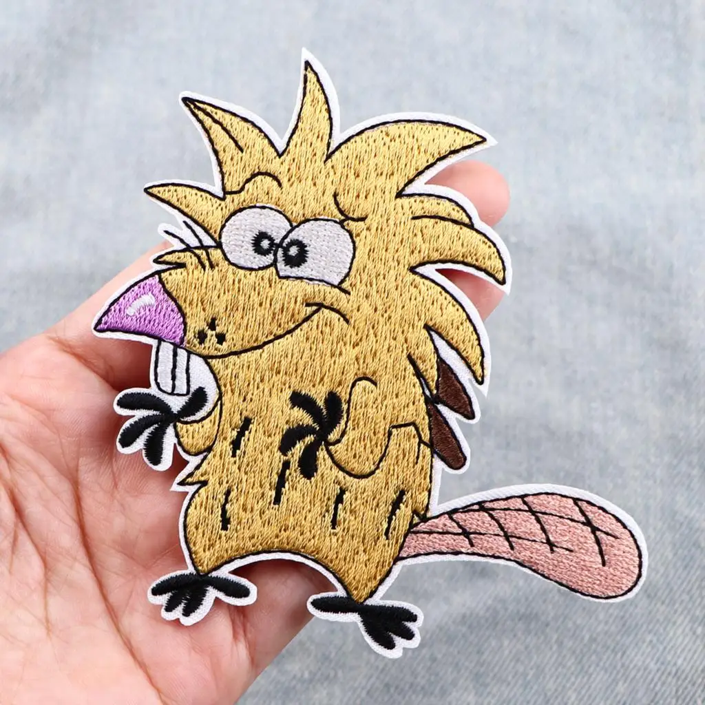 Parche de castor divertido de animales de dibujos animados, parches para planchar en la ropa, apliques bordados DIY, pegatinas DIY, mochilas, insignia