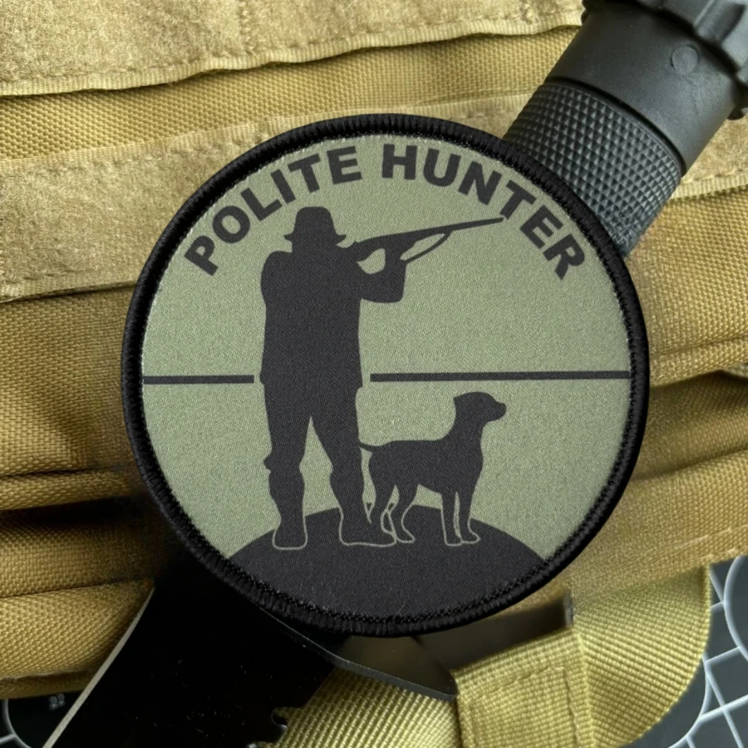 Parche de cazador pulido, insignia de moral táctica, emblema del ejército militar, pegatina para mochila, parches de gancho y bucle impresos, ropa