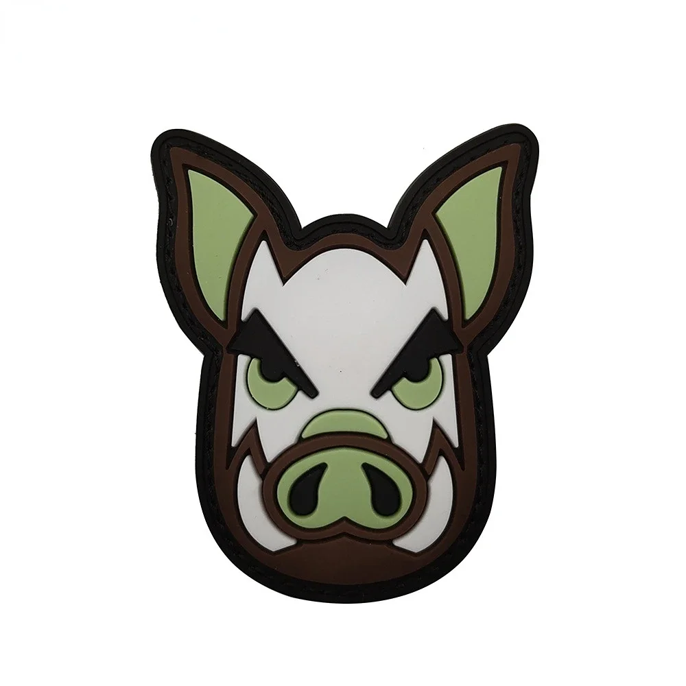Parche de cerdo táctico de PVC, pegatina de chaqueta de jabalí de dibujos animados, gancho de goma militar táctico, insignia, brazalete, accesorio Punk, pegatina para ropa
