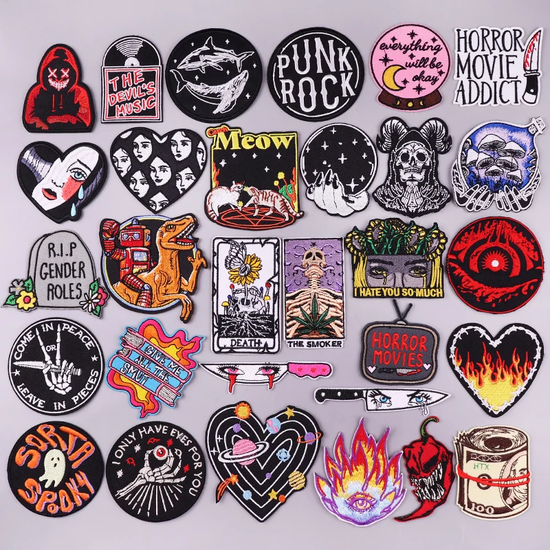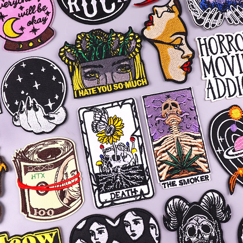 Parche para chaquetas Jeans DIY Horror Punk/calavera bordado parche hierro en parches para ropa parches termoadhesivos en ropa