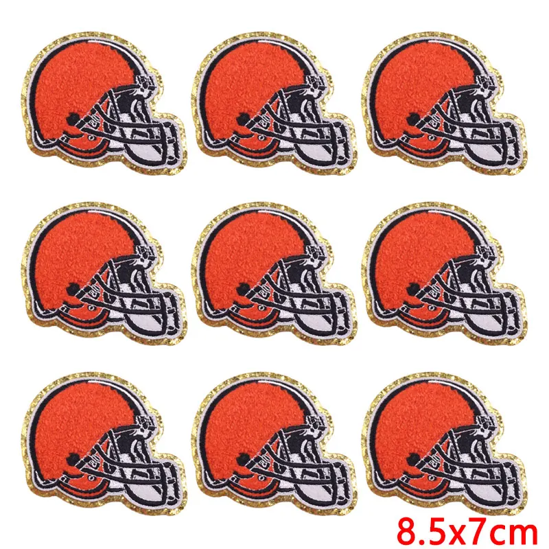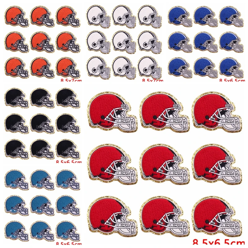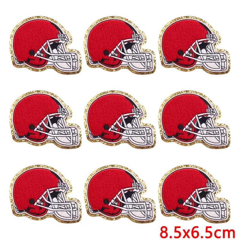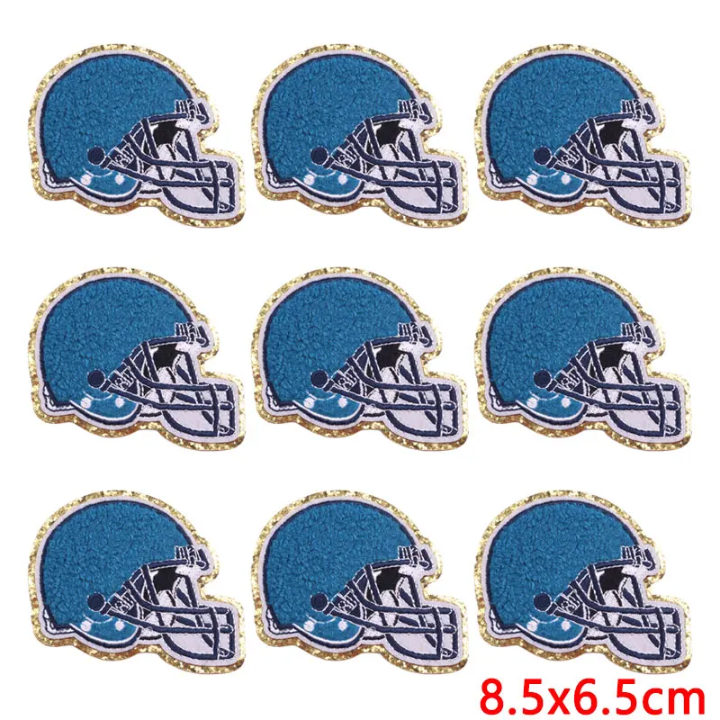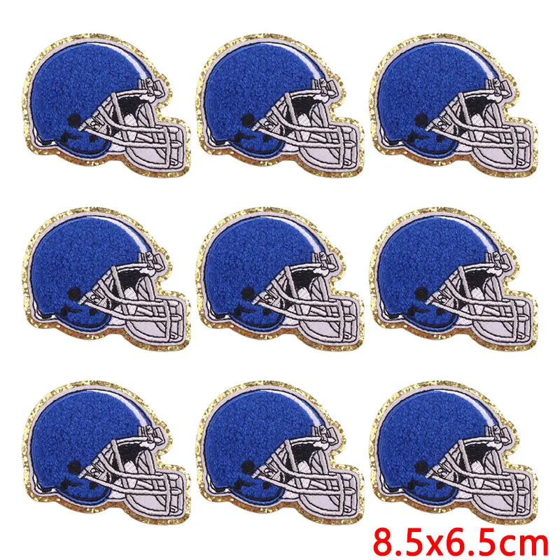 10 unids/lote Rugby fútbol Chenille parche hierro en parches para ropa casco de fútbol toalla bordado parches en ropa insignias