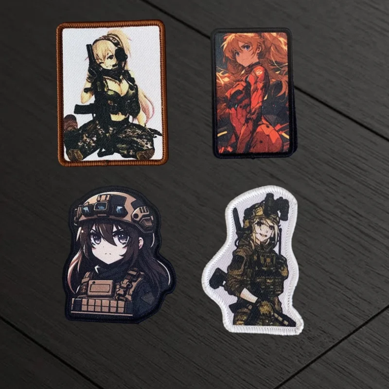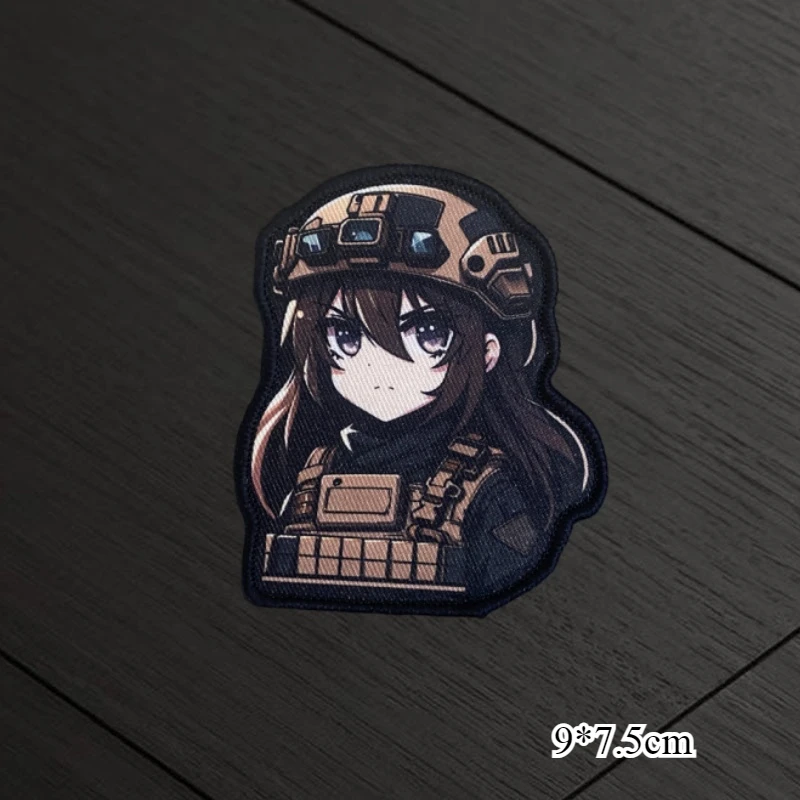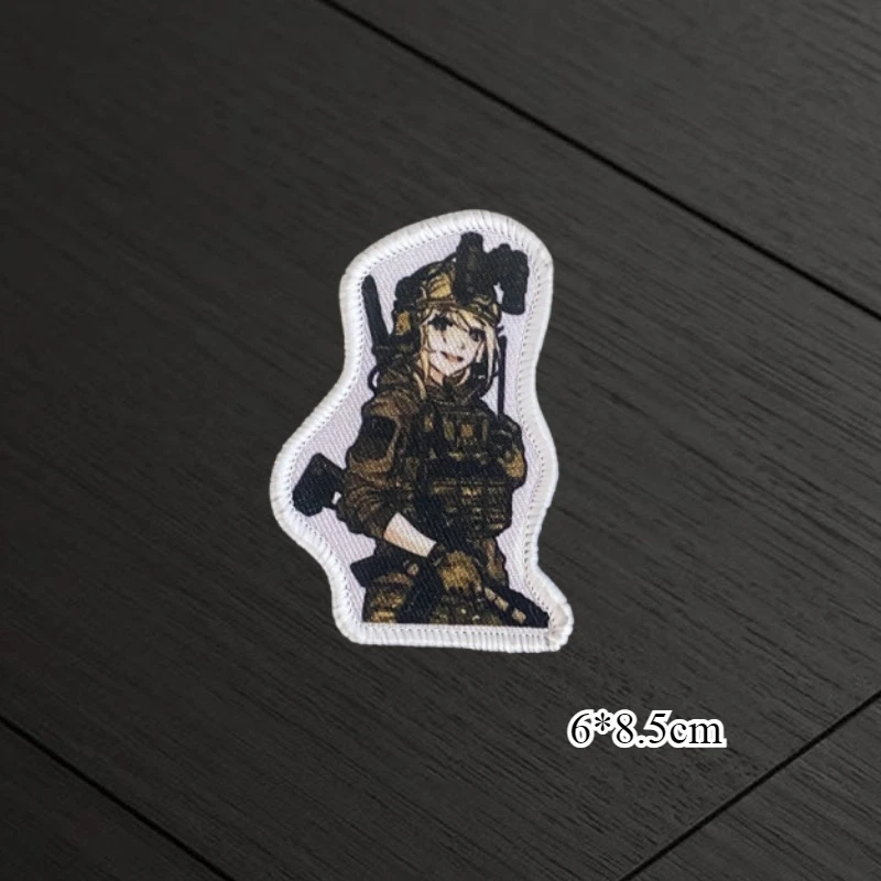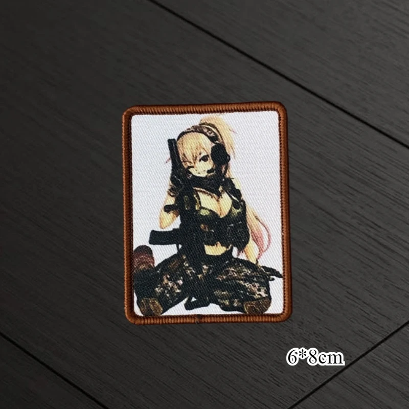 Parche de chica de Anime, insignia de moral táctica, estampado de primera línea, mochila con gancho y bucle, accesorios de decoración de ropa, brazalete adhesivo