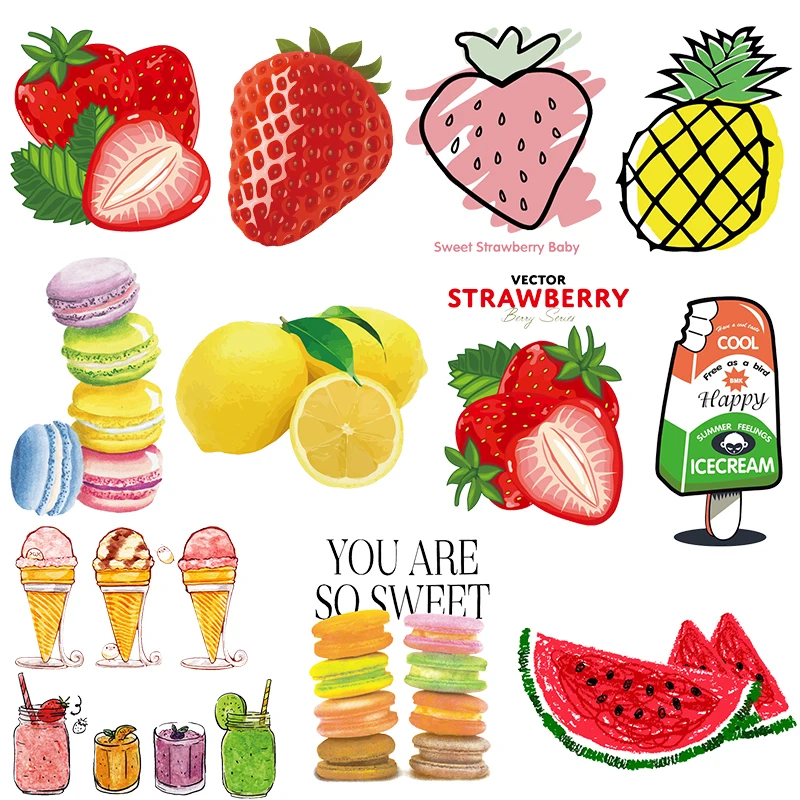 Parche de comida de dibujos animados, transferencia de hierro para ropa, Transferencia Térmica de frutas para ropa, apliques de vinilo, pegatina térmica para ropa DIY