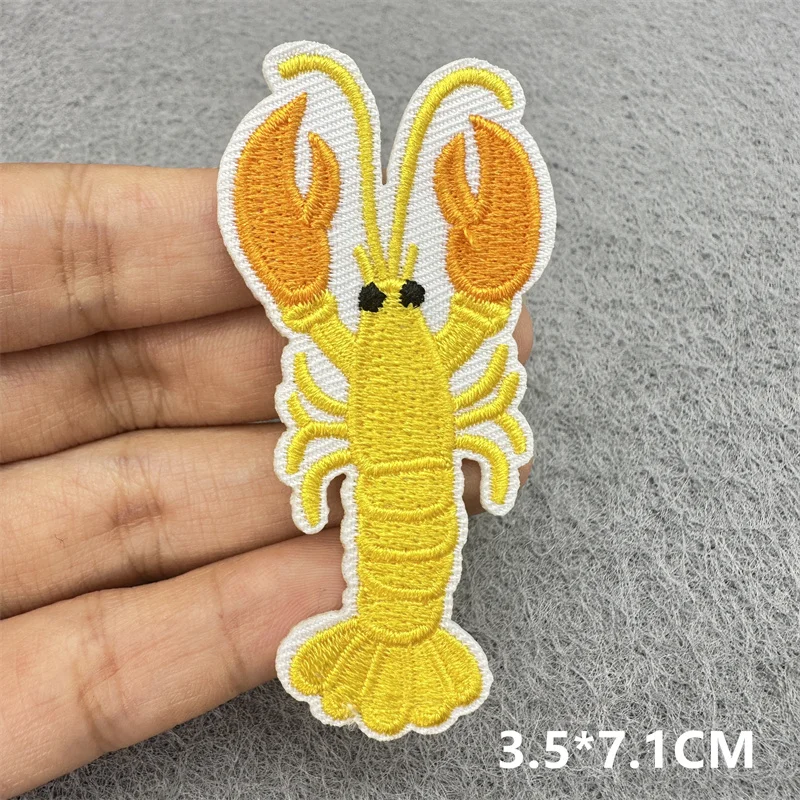 Ocean Shell Patch Iron On Patches For Clothing Sticker Cartoon Crab Shrimp Embroidery Patches On Clothes DIY Sew Applique