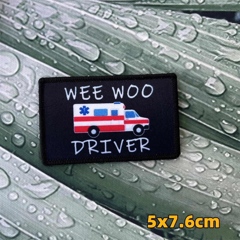 Parche de conductor Wee Woo, parches de insignia de moral de conductor de bomberos EMT o ambulancia, pegatinas impresas para mochila del ejército táctico