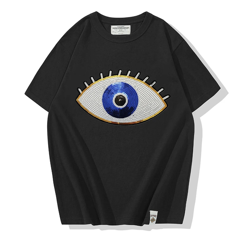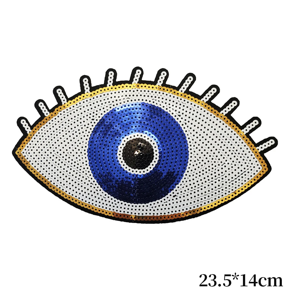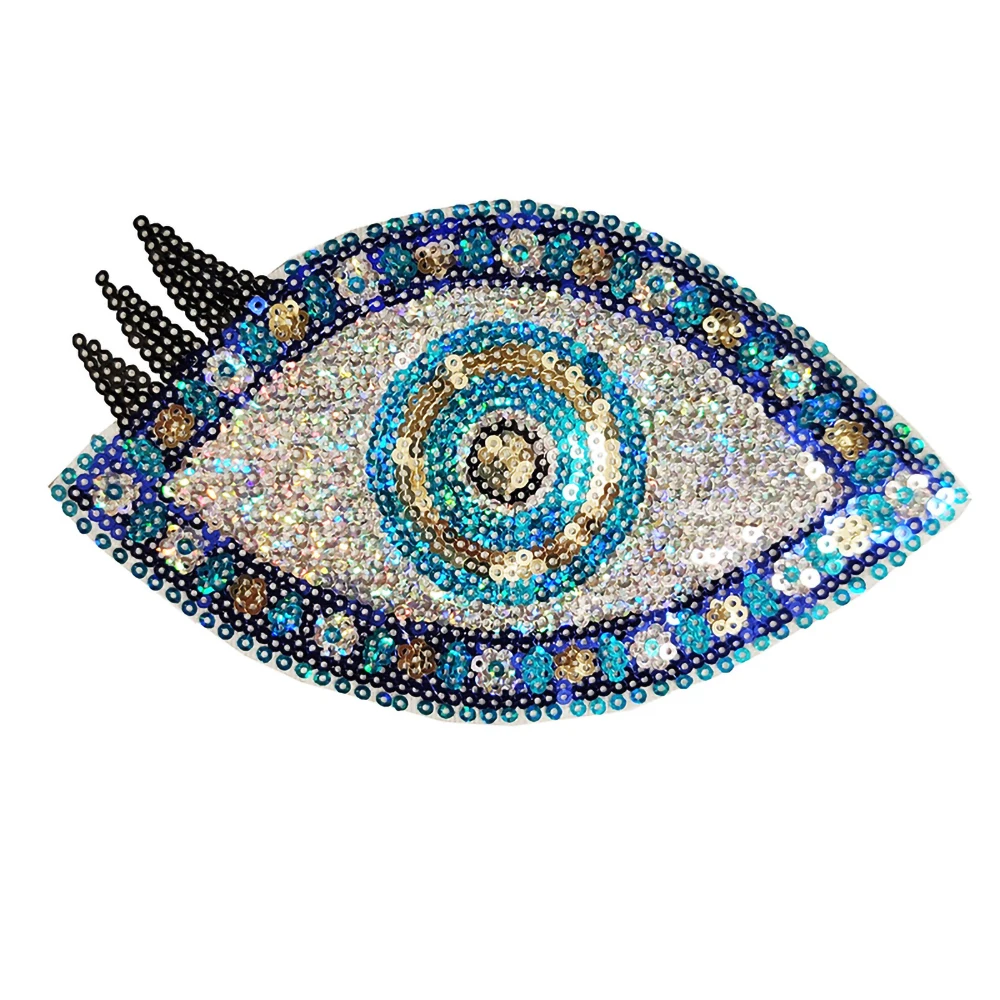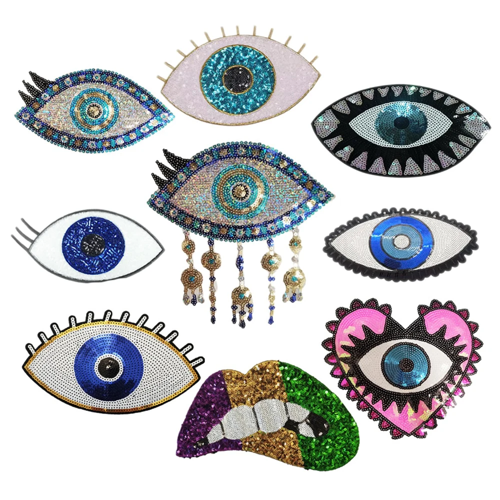 Parche de corazón de ojo de lentejuelas, mal de ojo, parches cosidos para planchar, accesorios de ropa, apliques de labios, pegatina bordada para ropa
