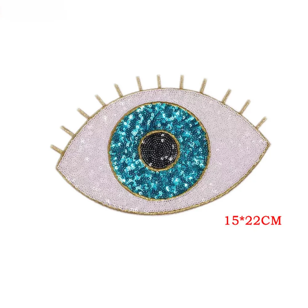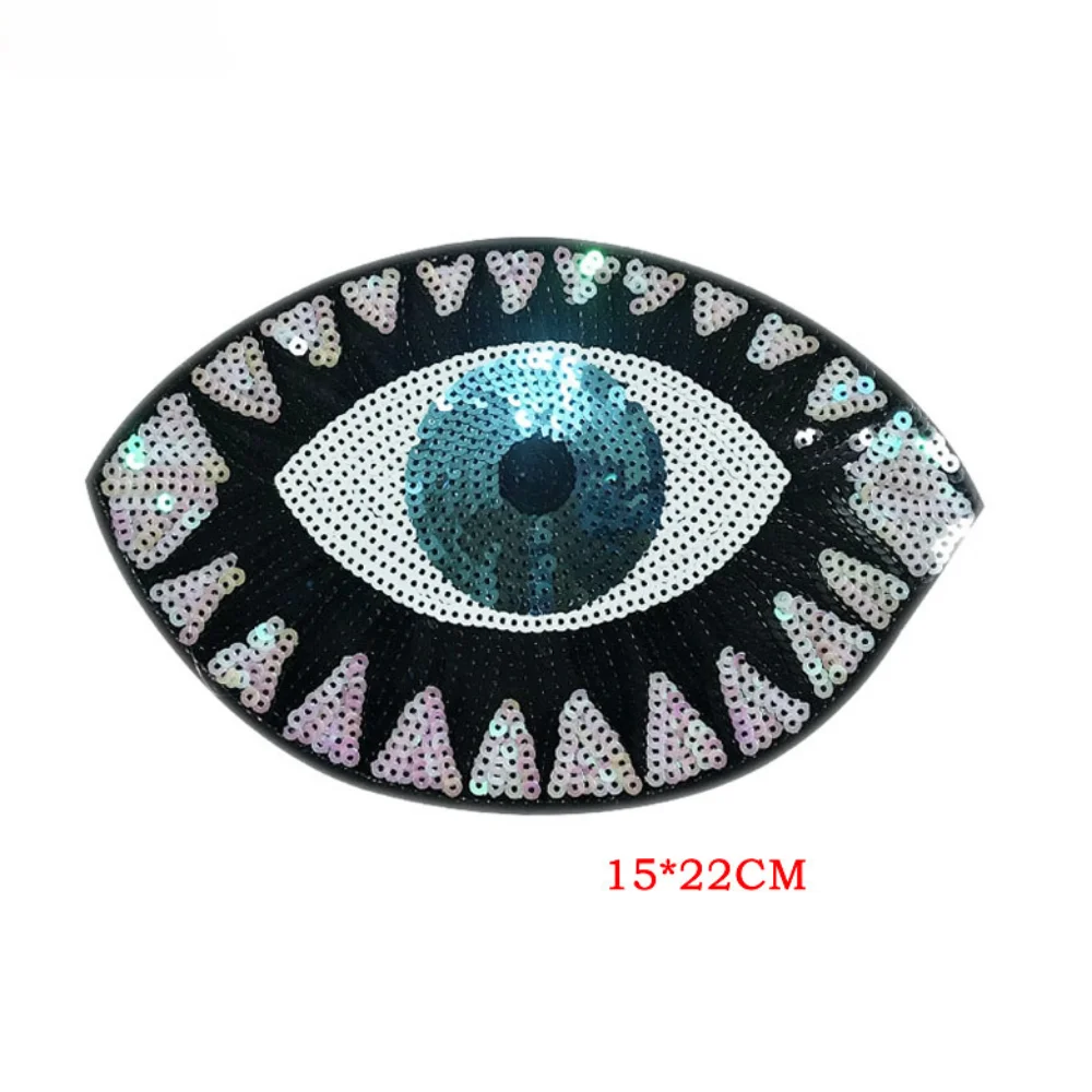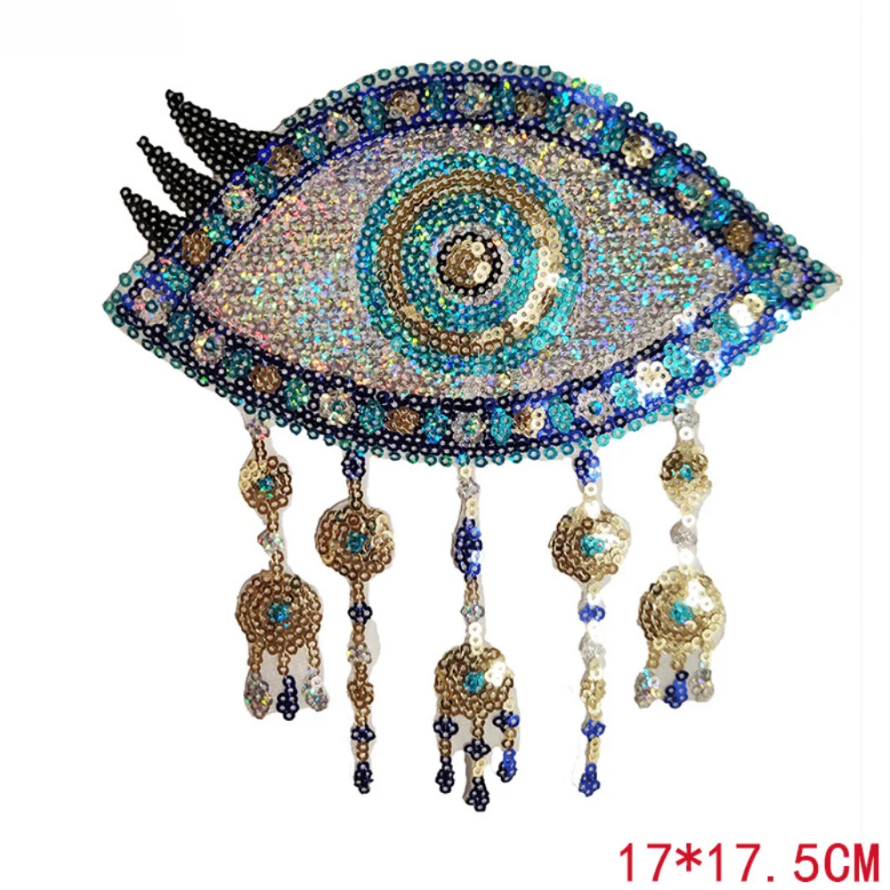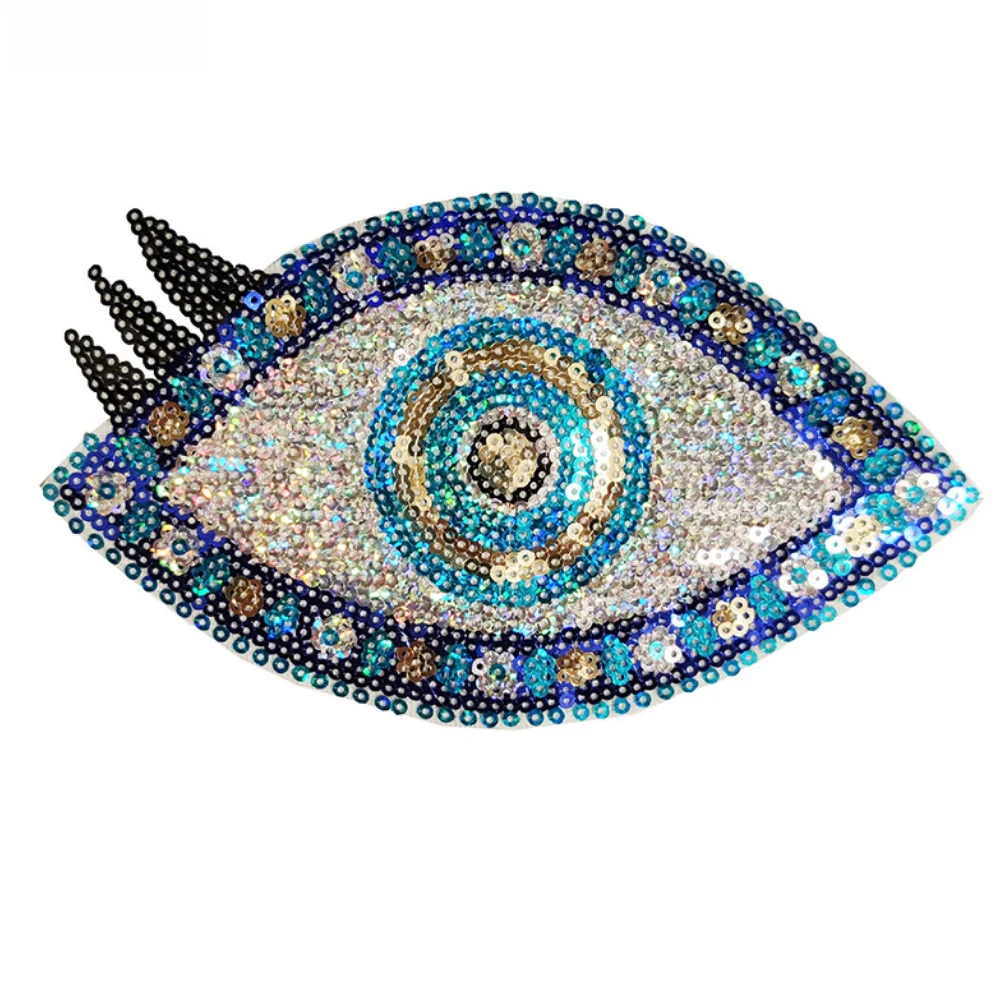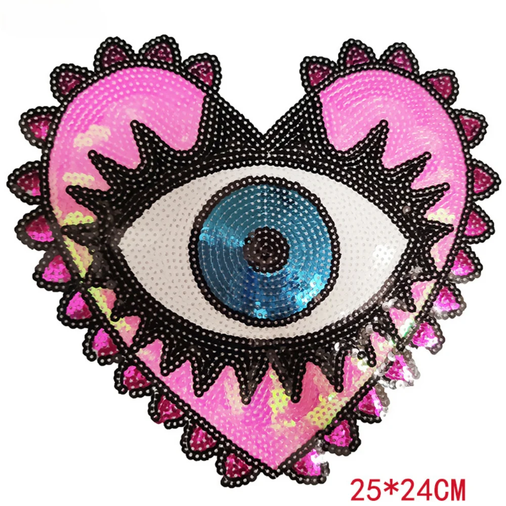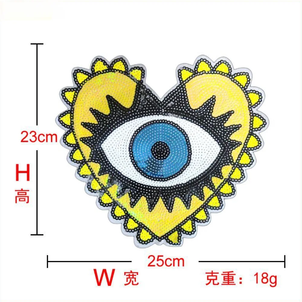 Parche de corazón de ojo de lentejuelas, parches de hierro para mal de ojo, accesorios de ropa cosidos, apliques de labios, pegatina bordada de lentejuelas para ropa