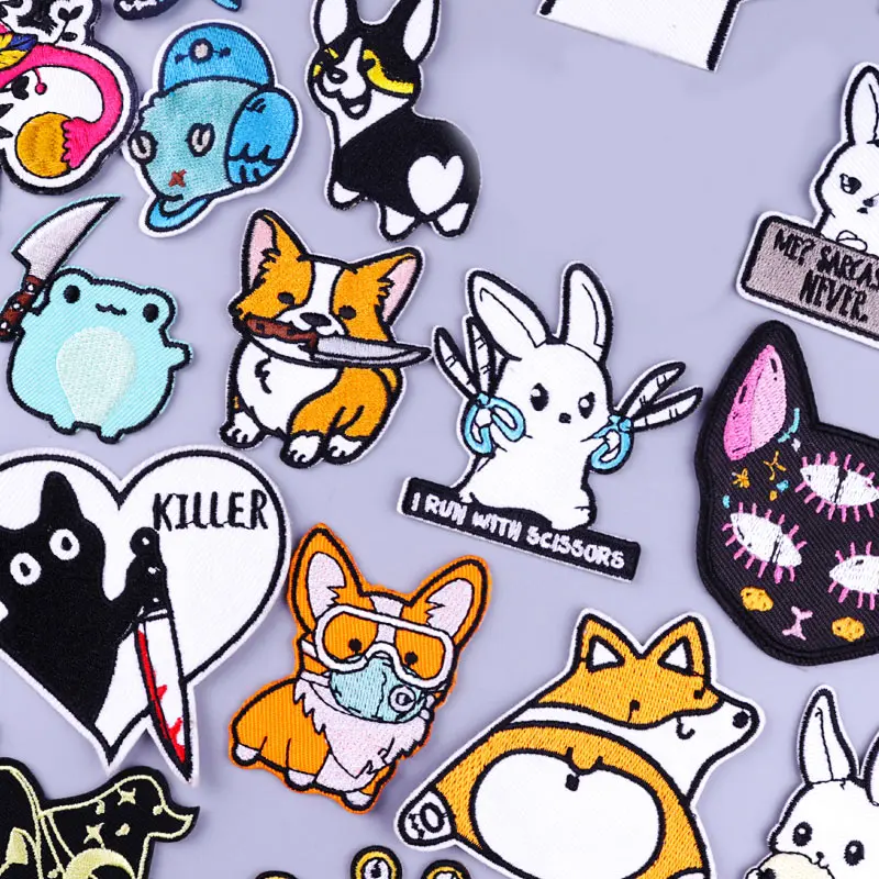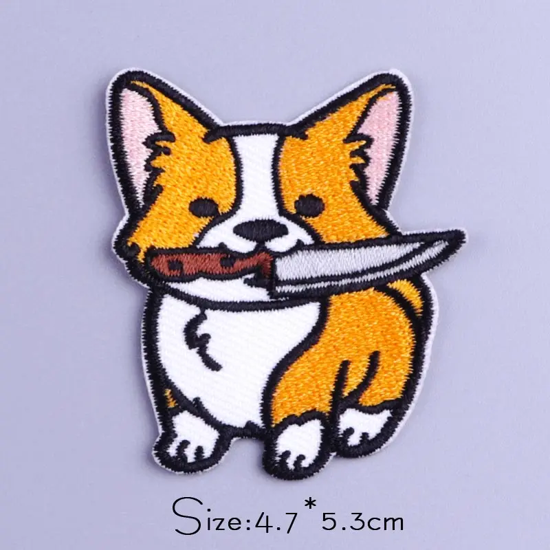 Comprar Parche de Corgi de dibujos animados, parches bordados de gato/conejo y cuchillo para ropa DIY, parches para planchar en la ropa, insignias de rana personalizadas
