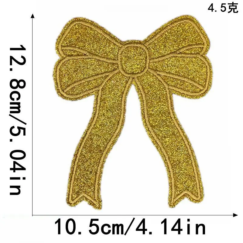 Emblema de lazo brillante para coser en parche, parches bordados de hierro con lazo dorado para gorra, accesorios de ropa, parches de apliques para mochila DIY
