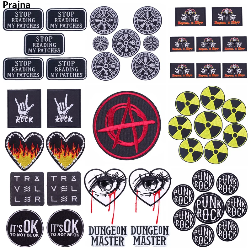 Parche de costura Punk DIY, bordado de letras, Rock, llama, parches termoadhesivos para ropa, 10 unids/lote