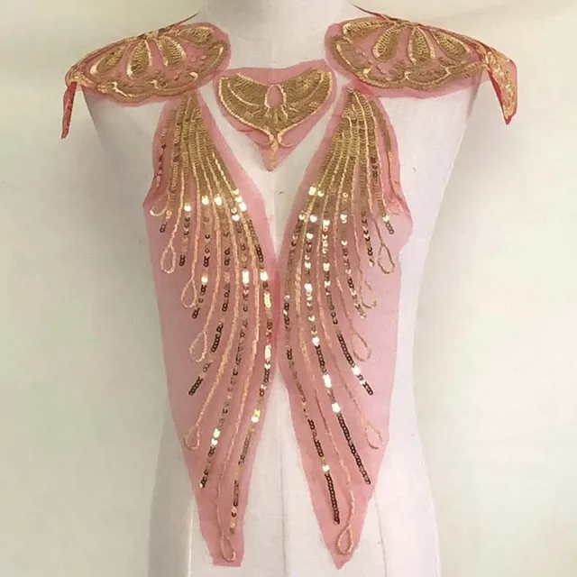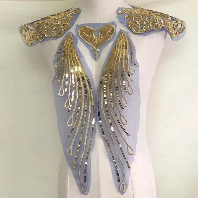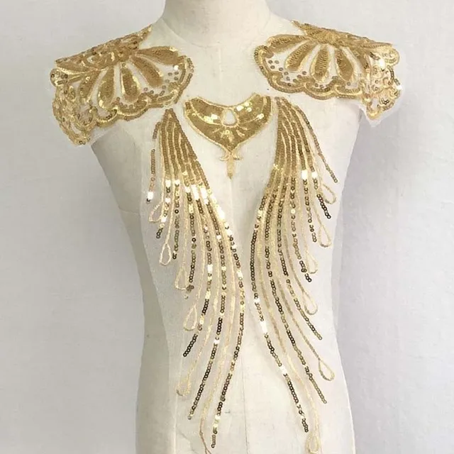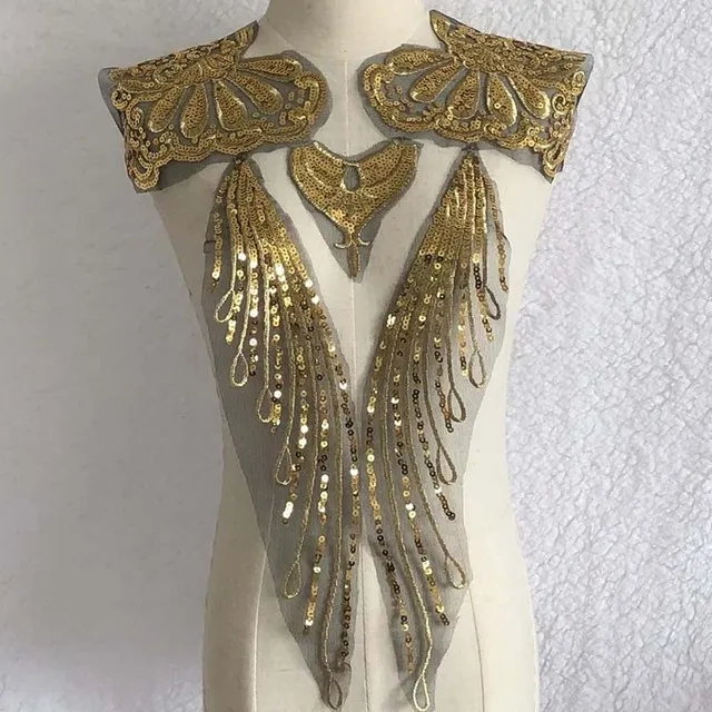 Parche de costura de tela de encaje de lentejuelas doradas y plateadas, apliques de cuello de corpiño, bordado de flores, parches para coser para vestido de fiesta, vestido de novia