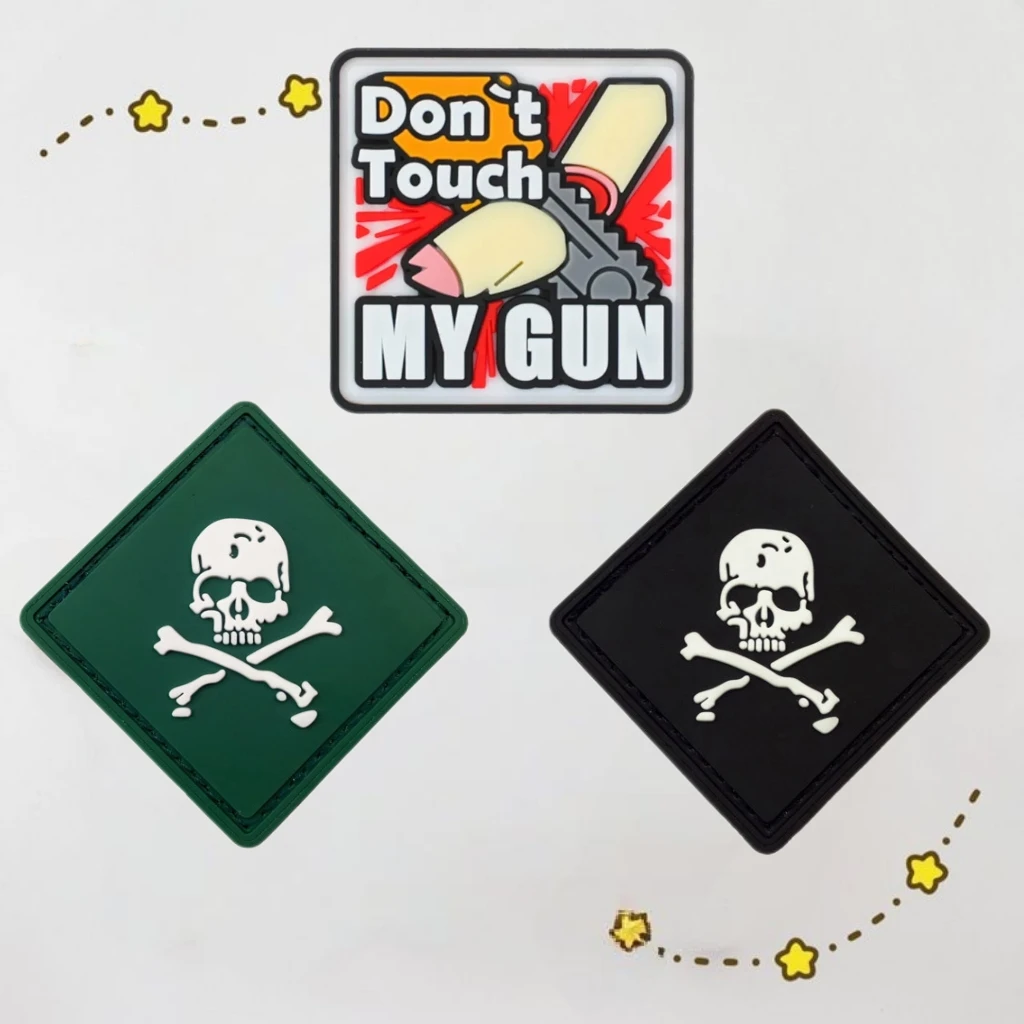 Parche de PVC 3D militar de calavera cuadrada, pegatinas de Don't Touch My Gun, insignia de moral táctica con gancho y bucle, mochila, parches DIY para ropa
