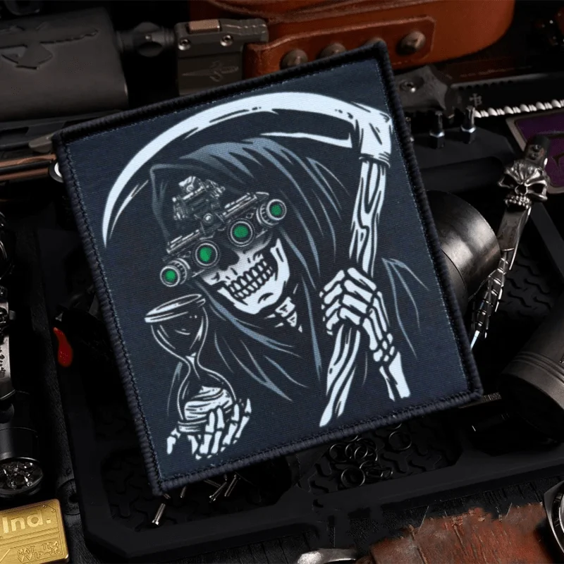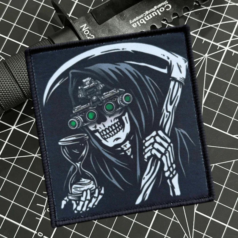 Parche de cuenta regresiva a la muerte, insignia de moral de calavera de Reaper, brazalete con gancho y bucle, parches estampados militares, pegatinas tácticas para mochila de muerte