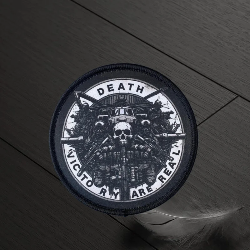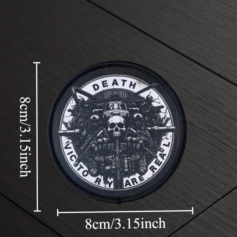 "DEATH VICTORY AREREAL" Patch Skull Tactical Morale Badge Hook and Loop Military Backpack Clothing Decorative Sticker Armband