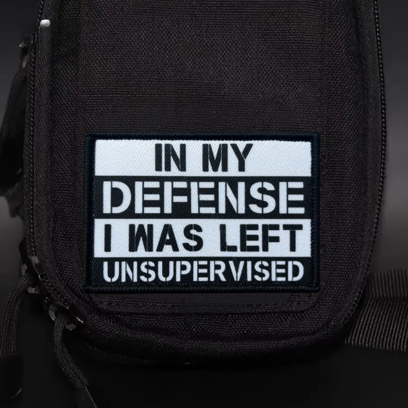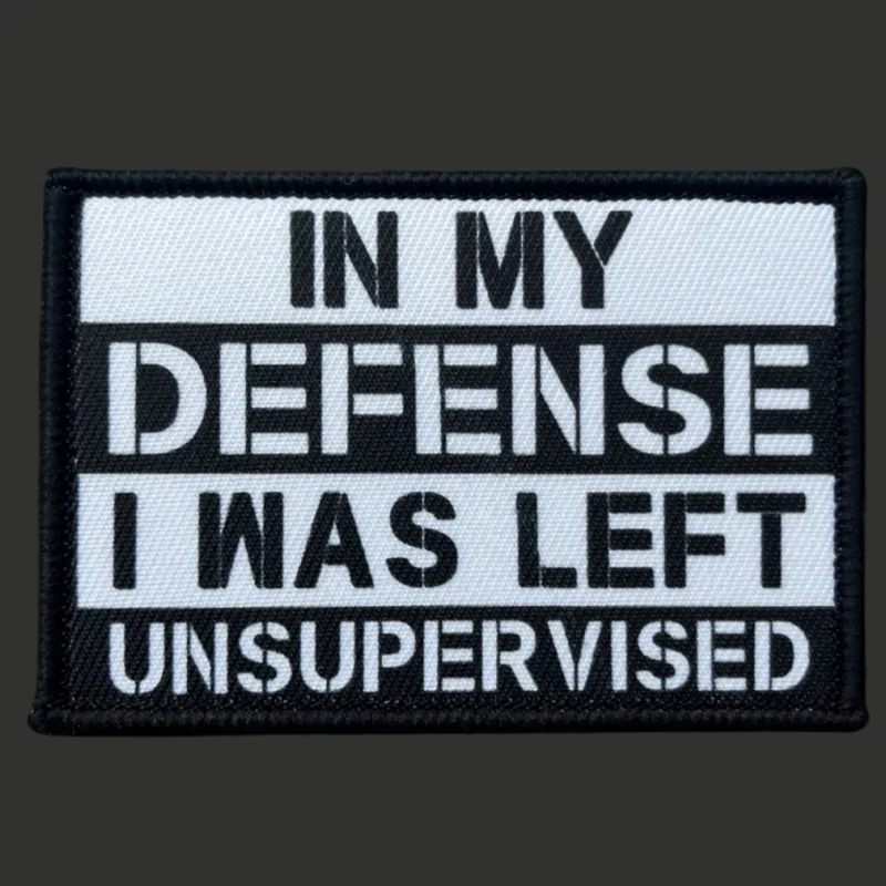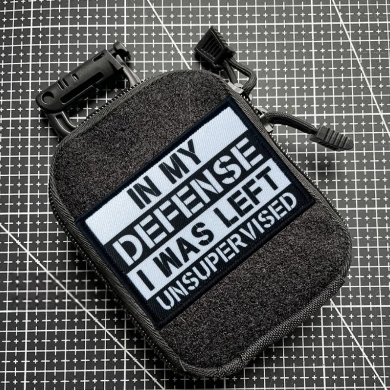 Parche "En mi defensa que la izquierda sin supervisión", insignia táctica de moral, gancho y bucle estampado, mochila, ropa, decoración, pegatina, brazalete