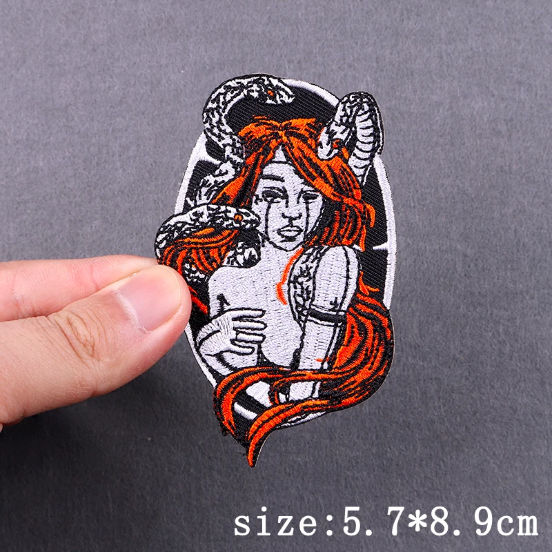 Parche de demonio Punk, parches para planchar para ropa, parches bordados de Calavera del diablo para ropa, parche bordado de Hip Hop, insignia adhesiva