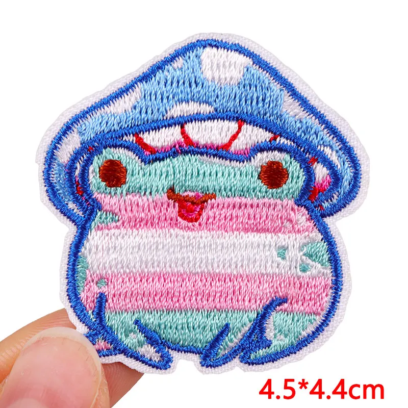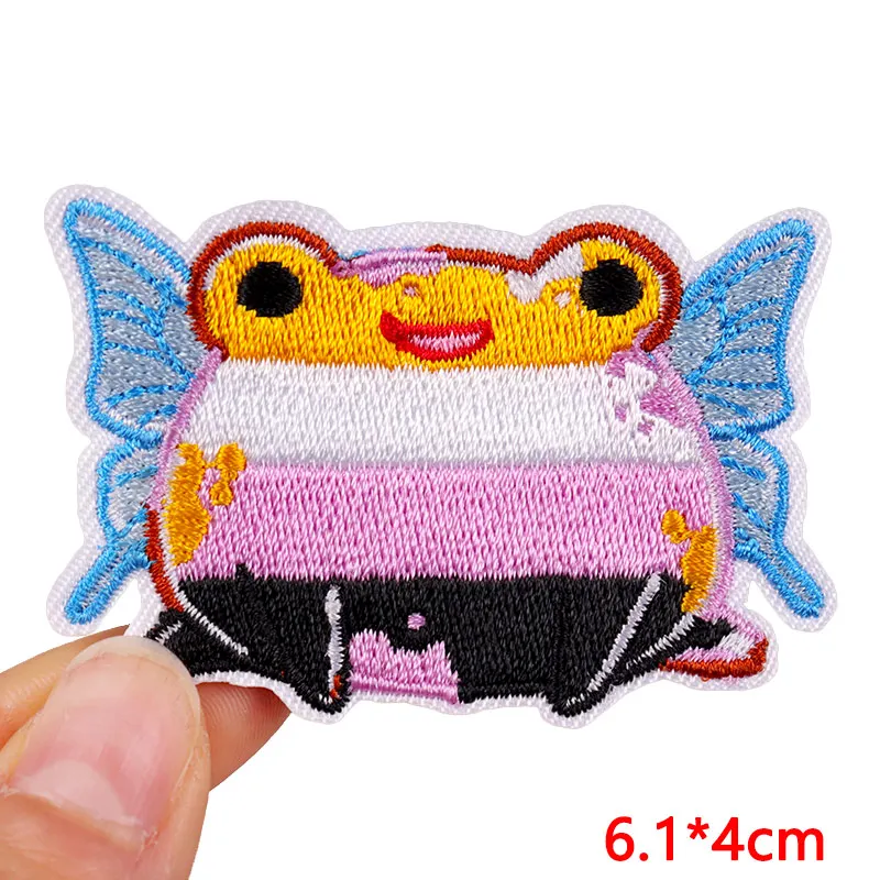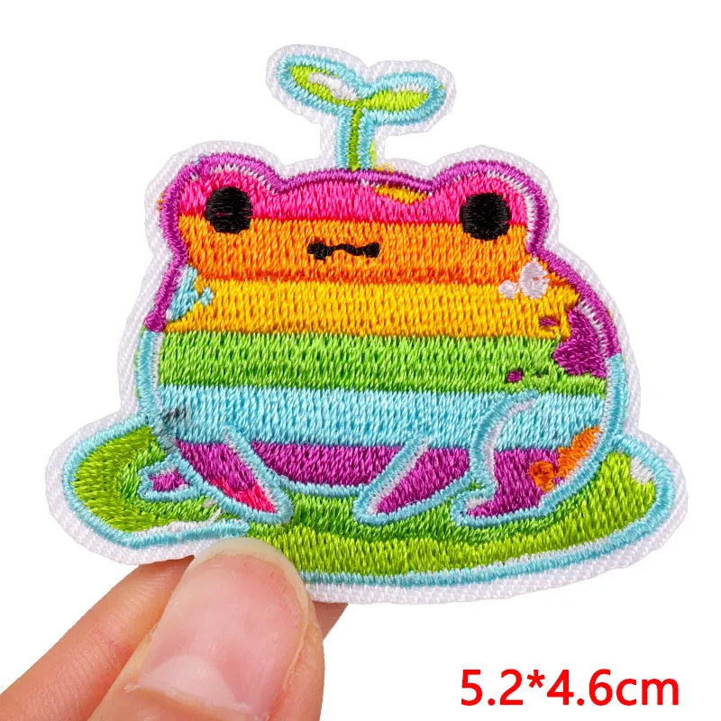 Parche de dibujos animados/animales, parches bordados, chaquetas, mochila, insignias para coser, parches coloridos de rana para planchar para decoración de ropa