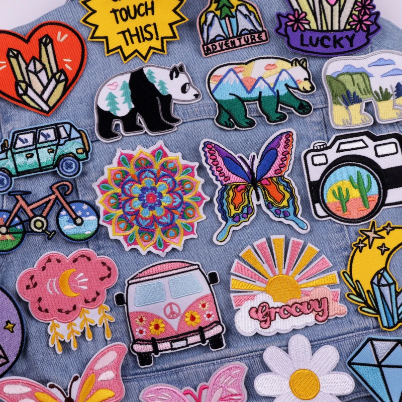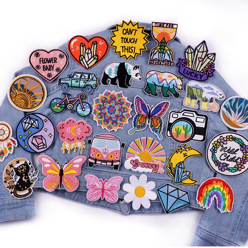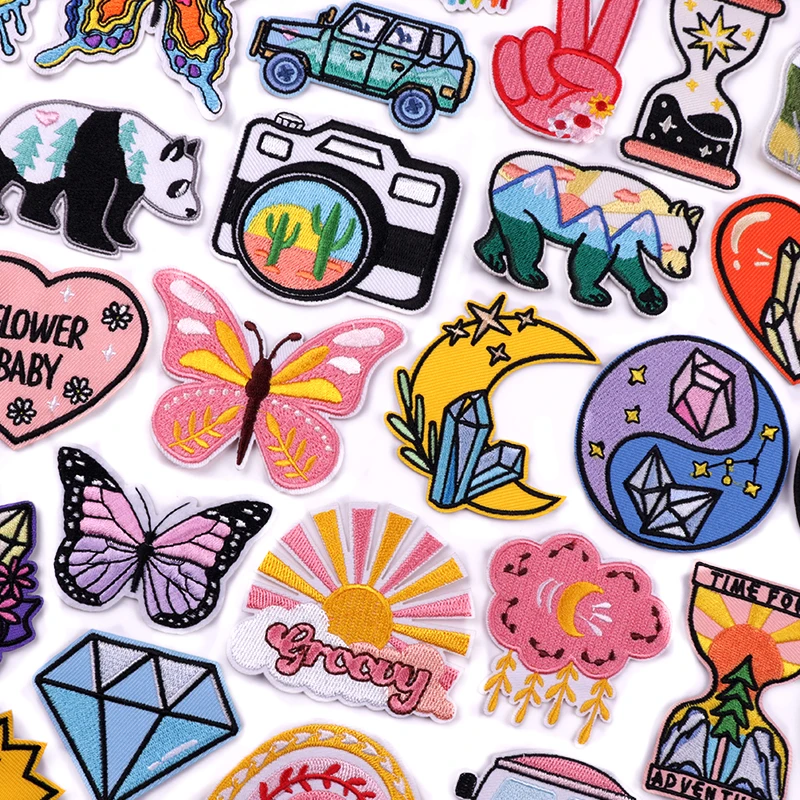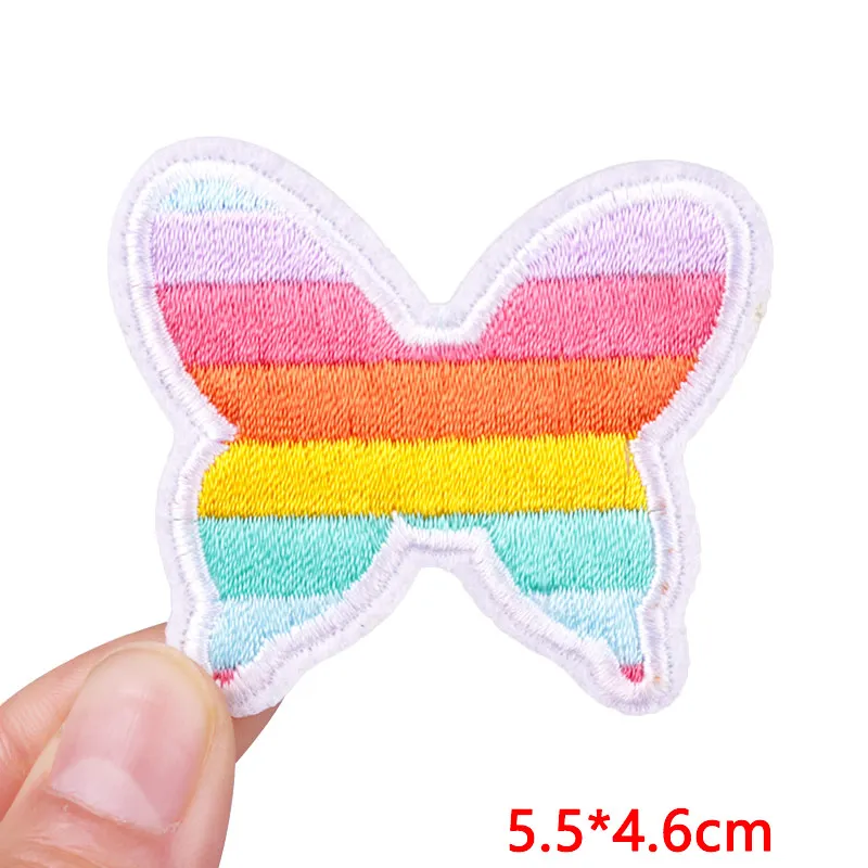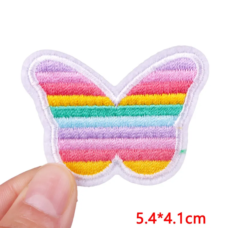 Parche de dibujos animados/arcoíris, parche bordado de oso mariposa, parches para planchar para ropa, parches termoadhesivos para ropa, chaqueta DIY