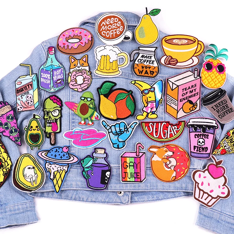 Parche de dibujos animados DIY, parches bordados de comida/bebida para ropa de niños, apliques de costura, parches para planchar para ropa, parche para pastel y Pizza