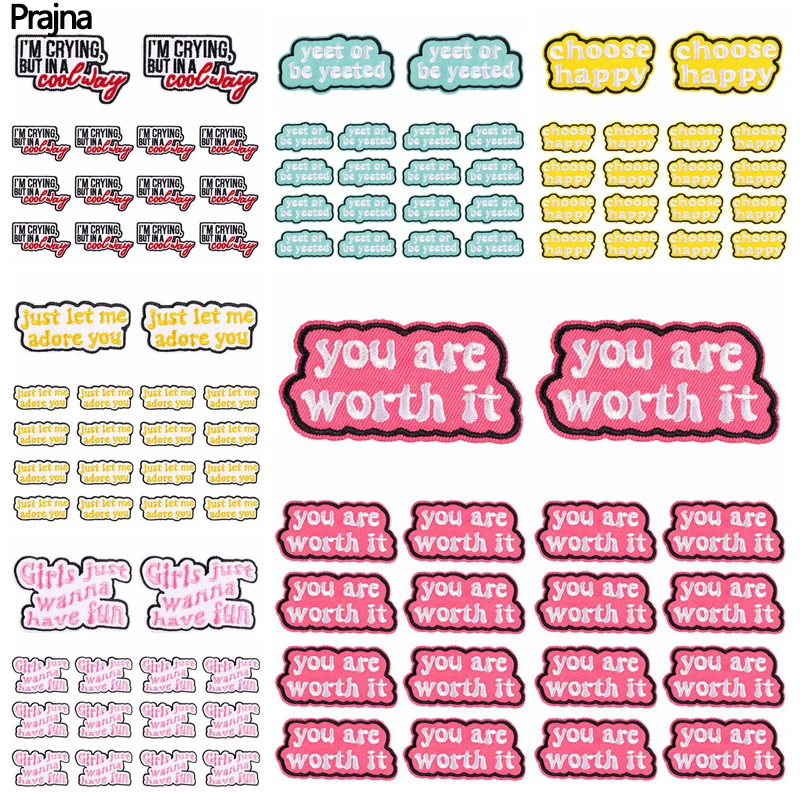 Parche de dibujos animados con letras bordadas, pegatinas bordadas para coser, parches termoadhesivos para ropa, 10 unids/lote
