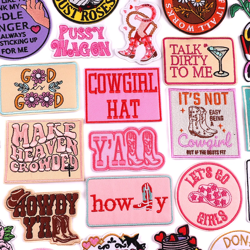 Parche de dibujos animados con letras y eslogan, parches bordados para planchar para ropa, parches termoadhesivos para sombreros, mochila, costura DIY