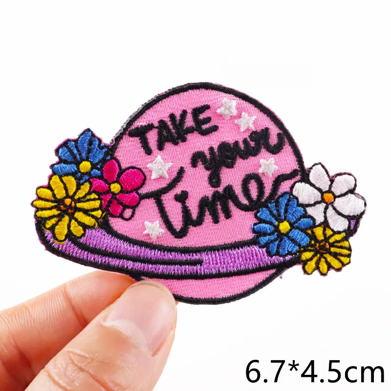 Parche de dibujos animados, parches bordados con letras de idiomas positivos, parches termoadhesivos para ropa, chaquetas, costura DIY