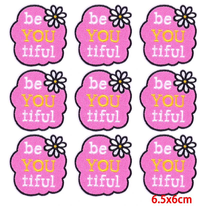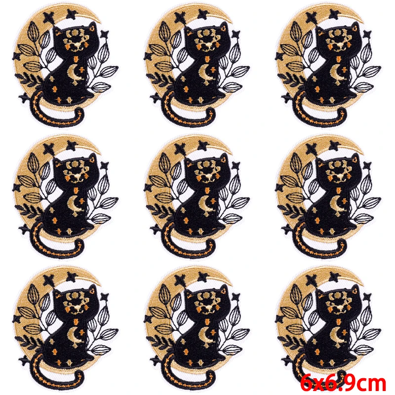 10 unids/lote parche de dibujos animados hierro en parches bordados para ropa parches termoadhesivos en ropa Animal gato/Flor parche insignia