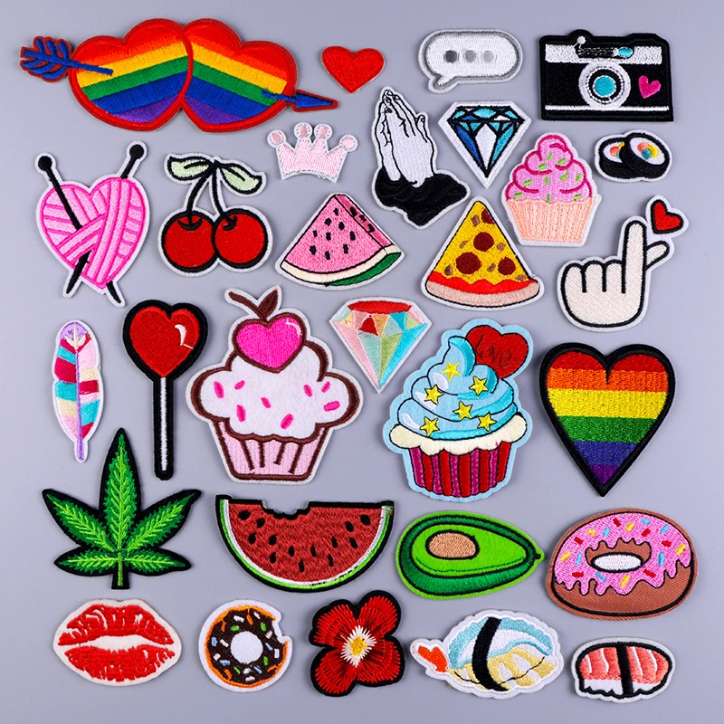 Parche de dibujos animados, parches de hierro en ropa, parches bordados de alimentos para ropa, parche de pastel para ropa, insignia de rayas, decoración de apliques