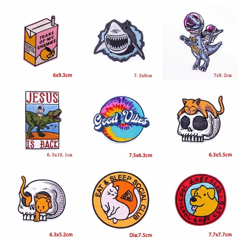 10PCS/lots Cartoon Patch DIY Animal/Cat/Dinosaur Patch Embroidery Patches For Clothing Punk Skull Patches On Clothes Sew Sticker