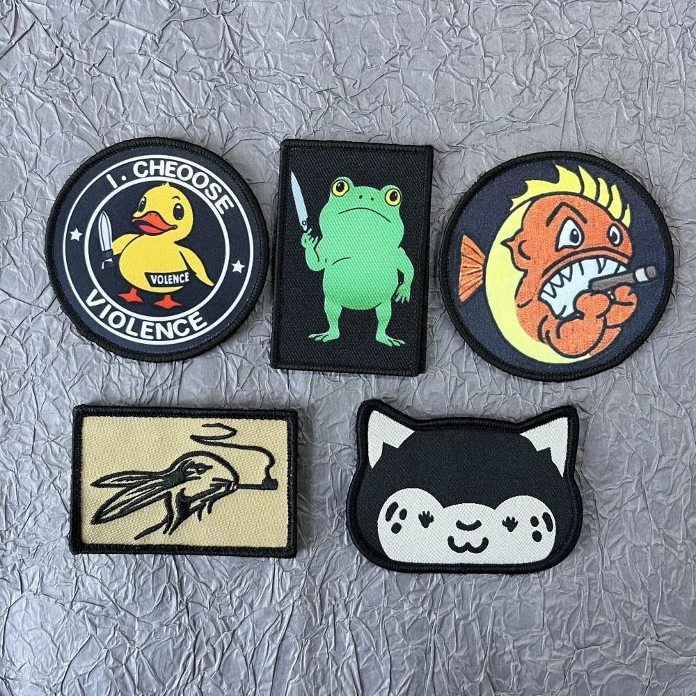 Parche de dibujos animados en ropa, equipo táctico, pegatinas de pato de rana, parches de gancho y bucle, apliques de mochila para ropa