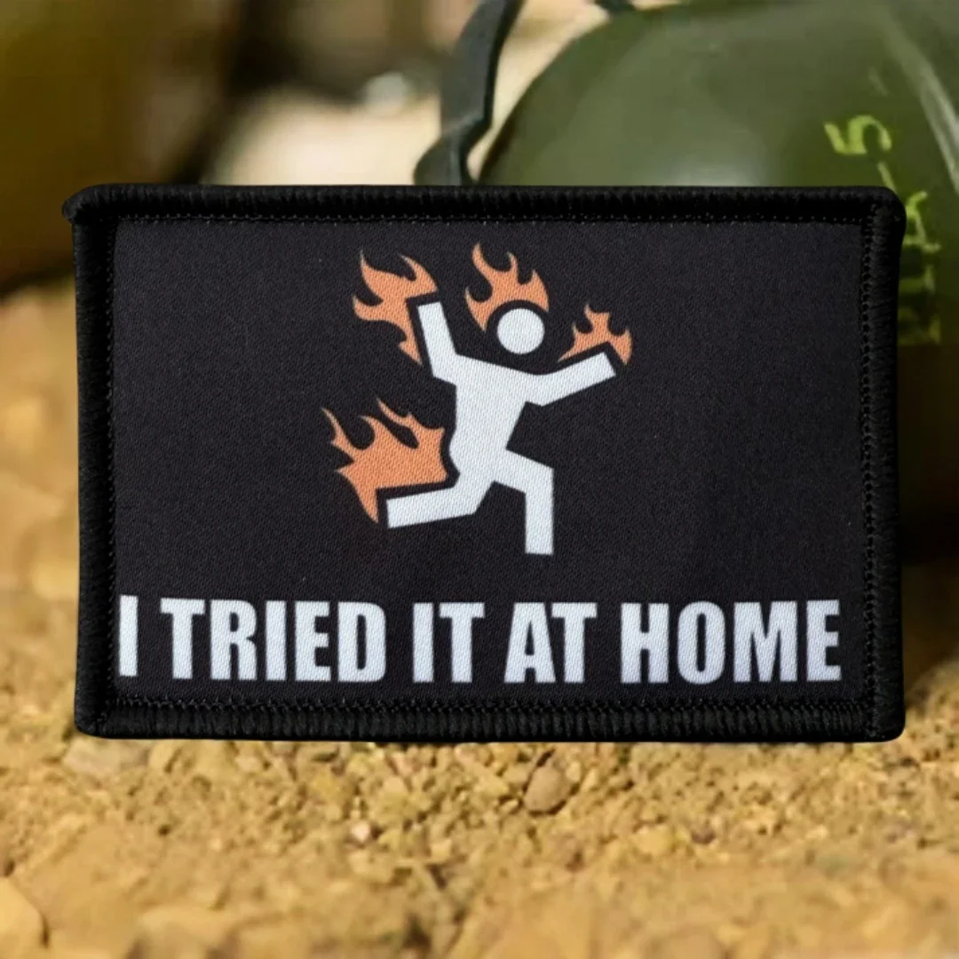 Parche divertido I Tried It At Home, insignia de moral táctica, parches de gancho y bucle impresos para ropa, pegatina para mochila del ejército militar - imagen 1