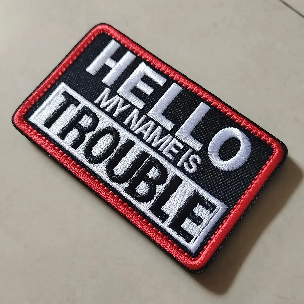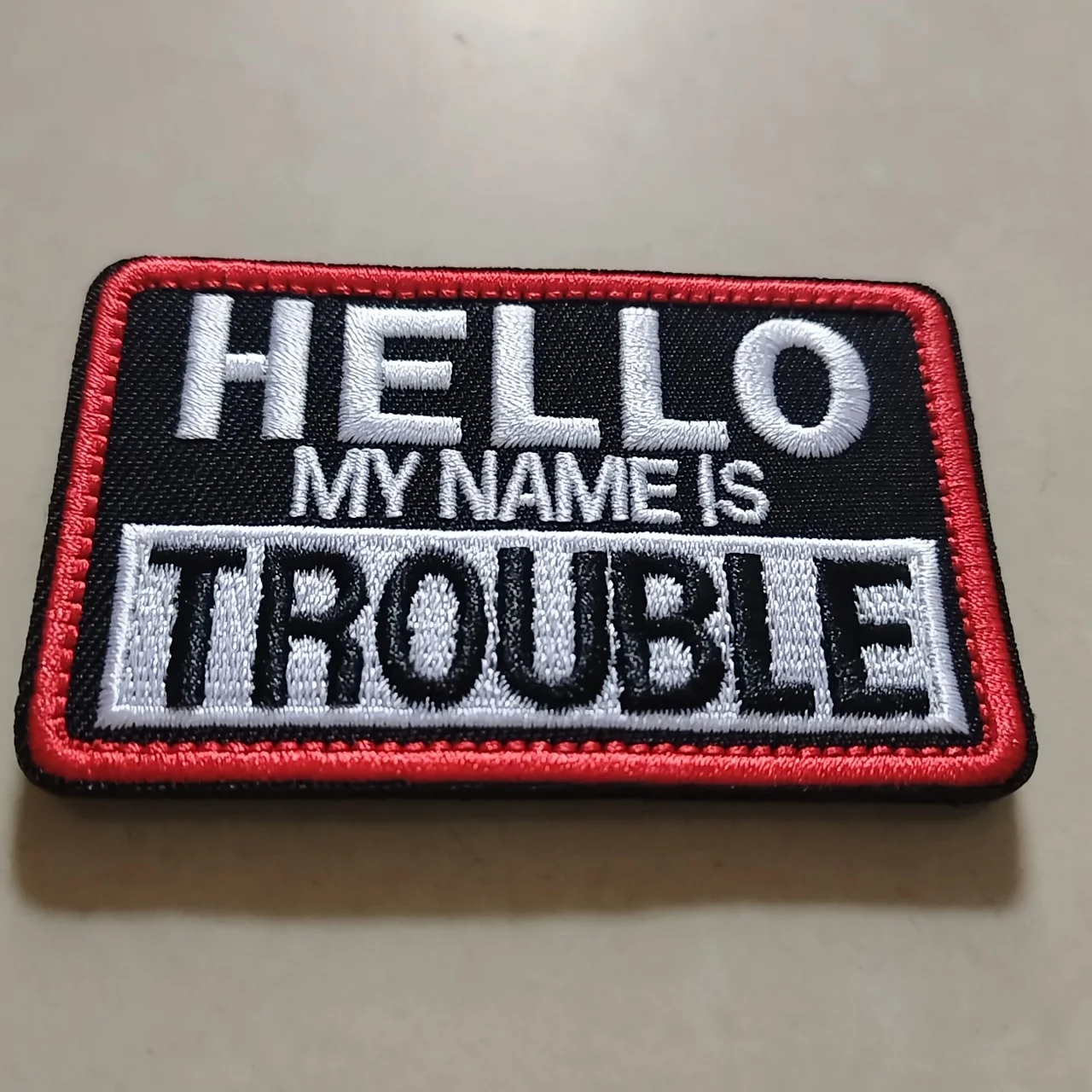Parche divertido Meme "Hola mi nombre es problemas" Velcros táctico cierre de gancho y bucle-insignia bordada militar para mochila