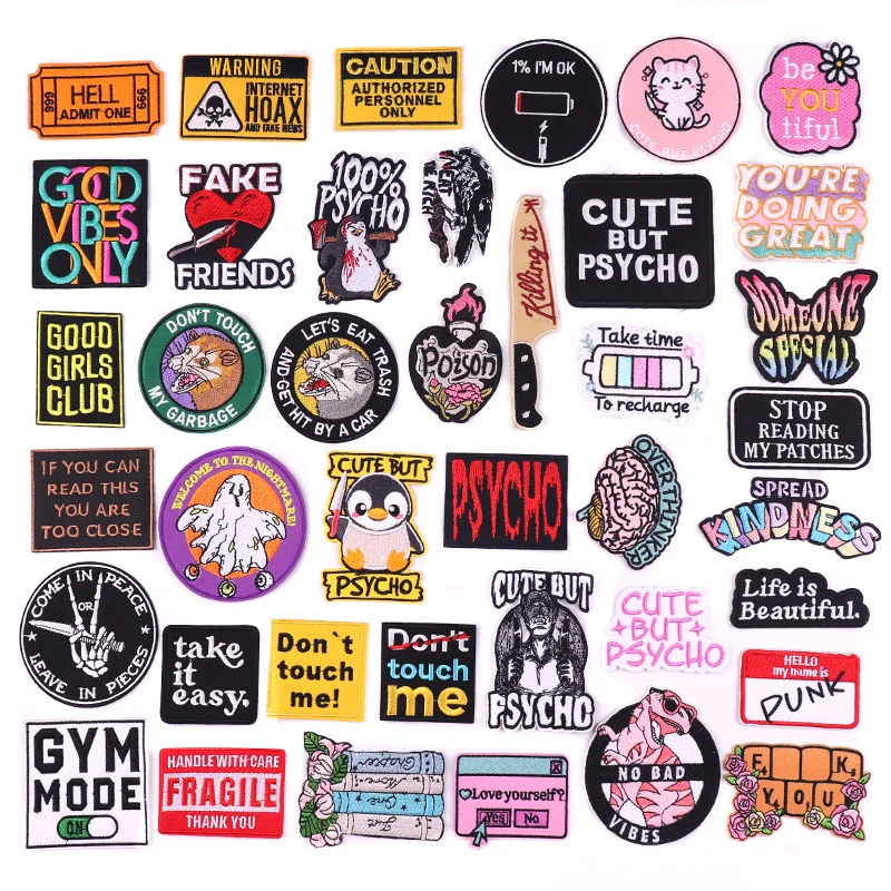 Parche Don't Touch Me, parche bordado con letras de dibujos animados/eslogan, parches para planchar para ropa, parches termoadhesivos para ropa DIY