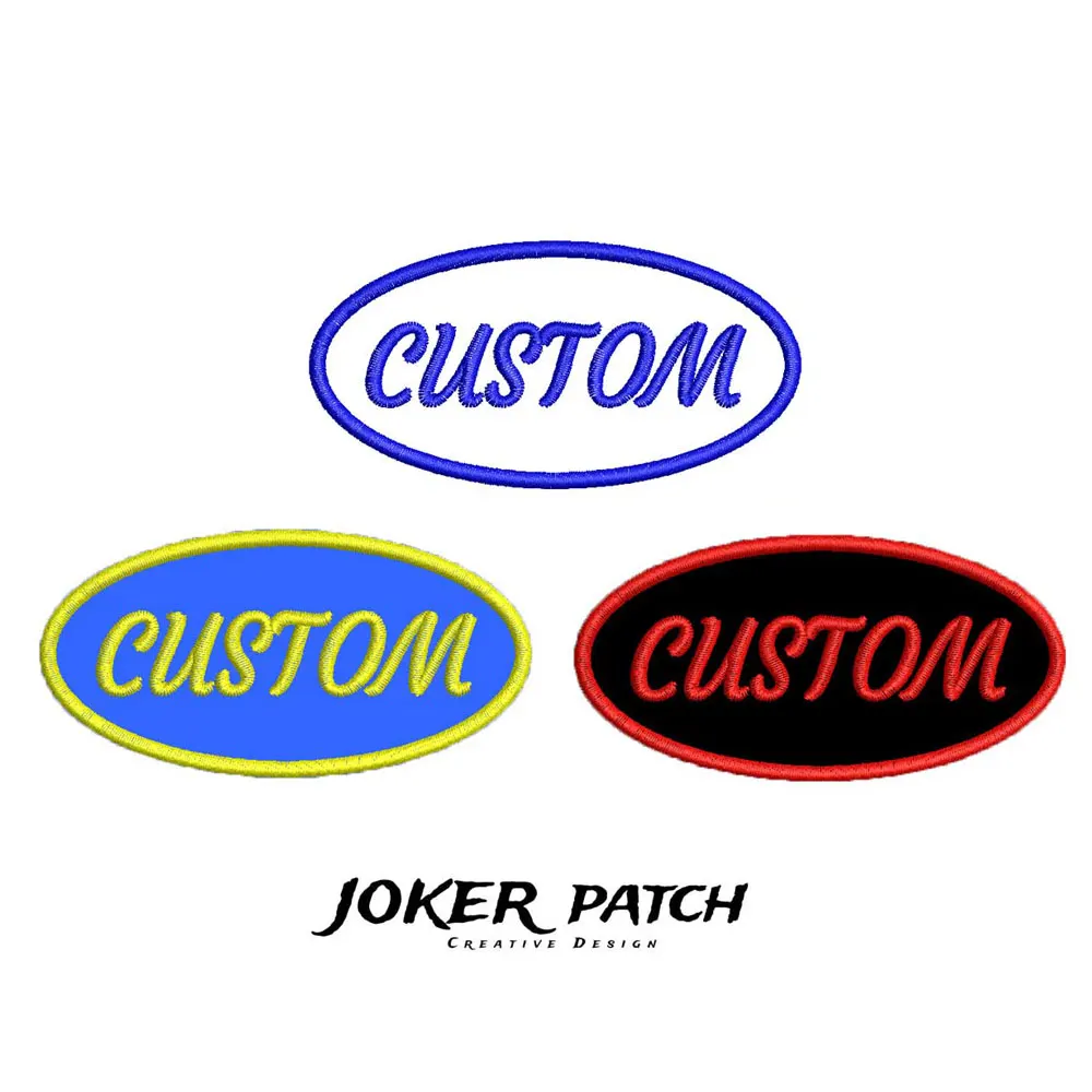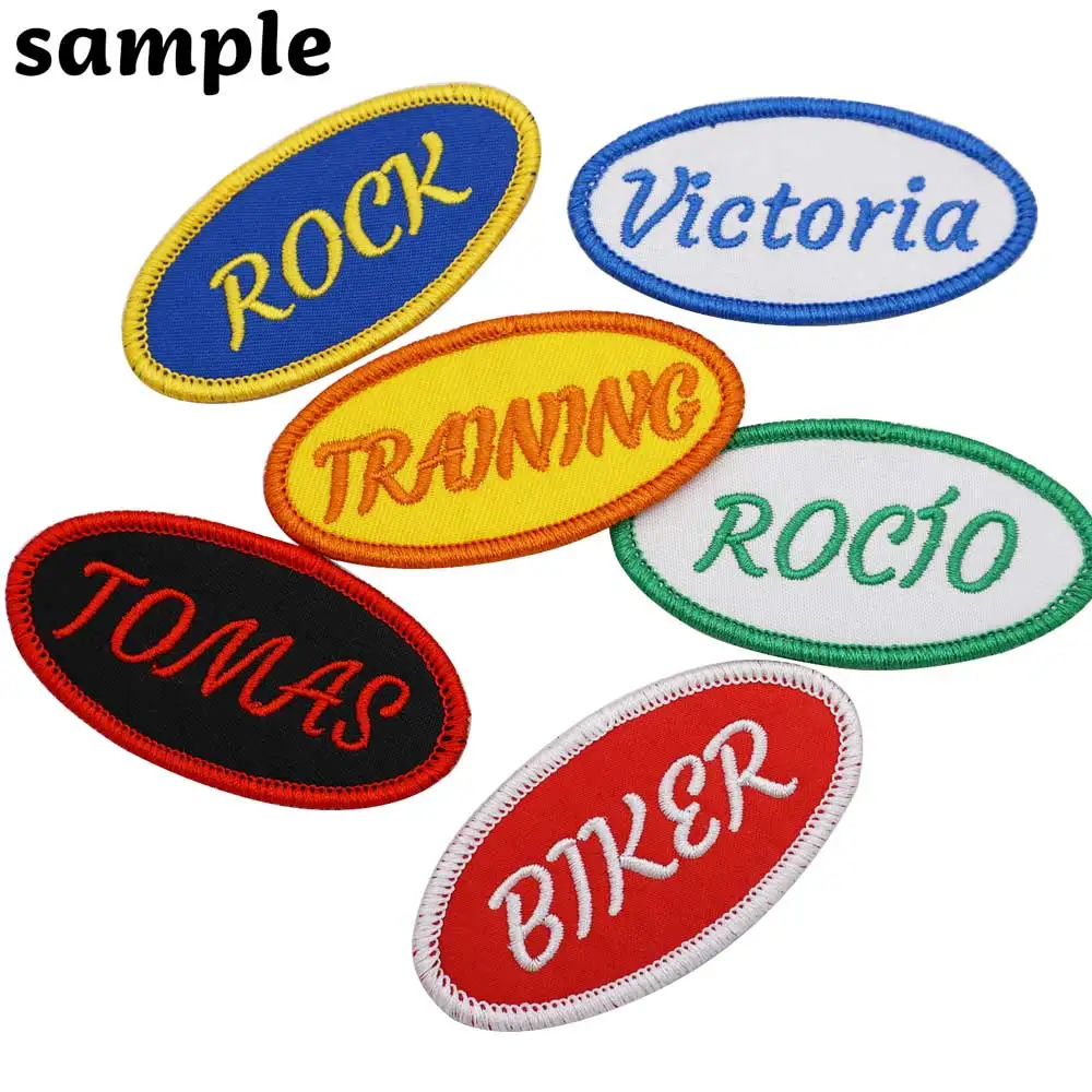 Parche elíptico con nombre bordado personalizado para ropa, mochila y sombreros, con respaldo de gancho o planchado