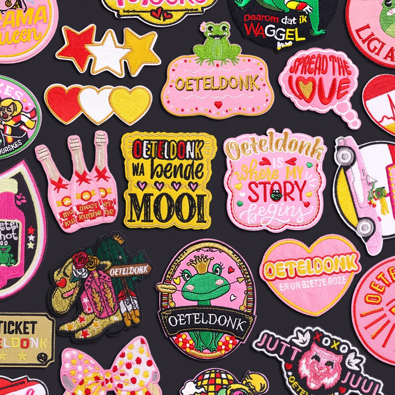 Parche con emblema de Oeteldonk de la serie rosa, parches para planchar para ropa, parches de rana de Carnaval de los Países Bajos en insignias de ropa