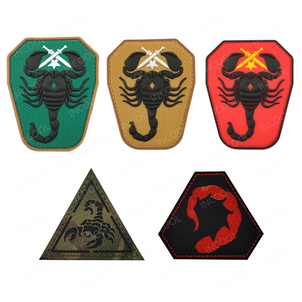 [Especificación]:Parche de escorpión de goma de PVC emblema táctico insignias infrarrojo reflectante IR brazalete decoración parches de hombro para chaquetas mochila