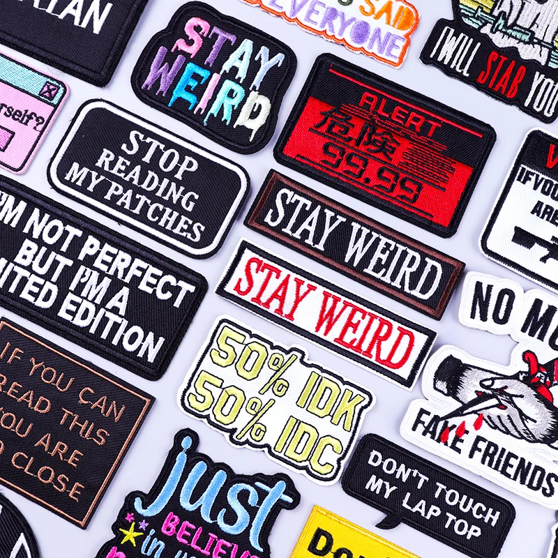 Parche con eslogan indicativo, parches para planchar/coser para ropa, parches termoadhesivos, bordado/parche Fusible, apliques extraños DIY