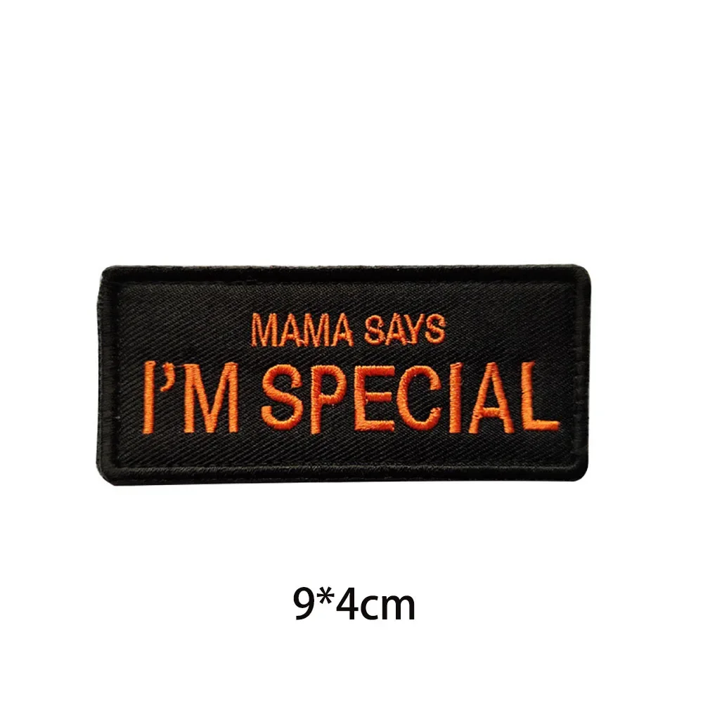 Parche especial Mama Says Im, parches de moral tácticos bordados rusos para ropa, mochila, insignia, apliques de gancho y bucle, pegatinasDescripción: