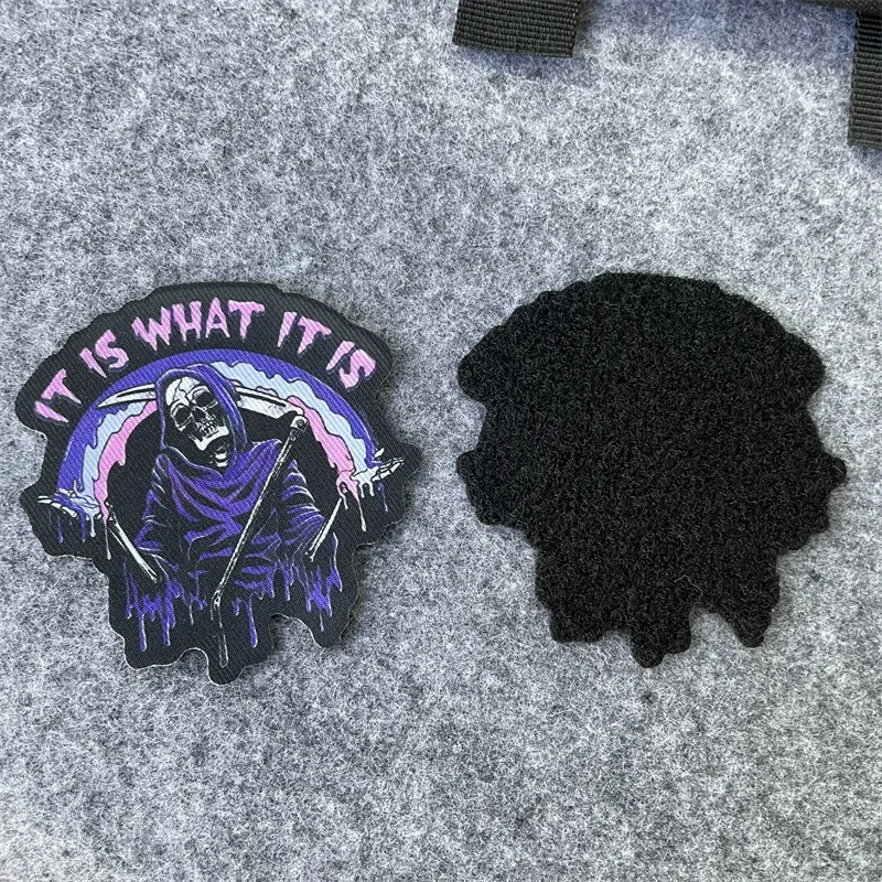 Parche espeluznante de Halloween, IT IS WHAT IT IS, brazalete de calavera con gancho y bucle, parche Punk, pegatina de tela, apliques para ropa